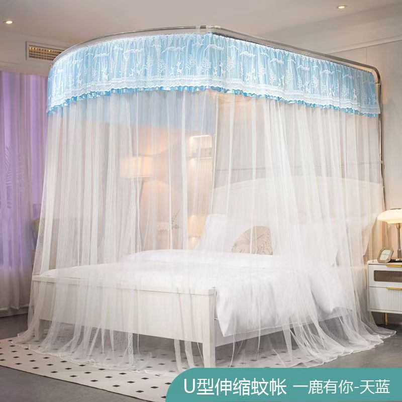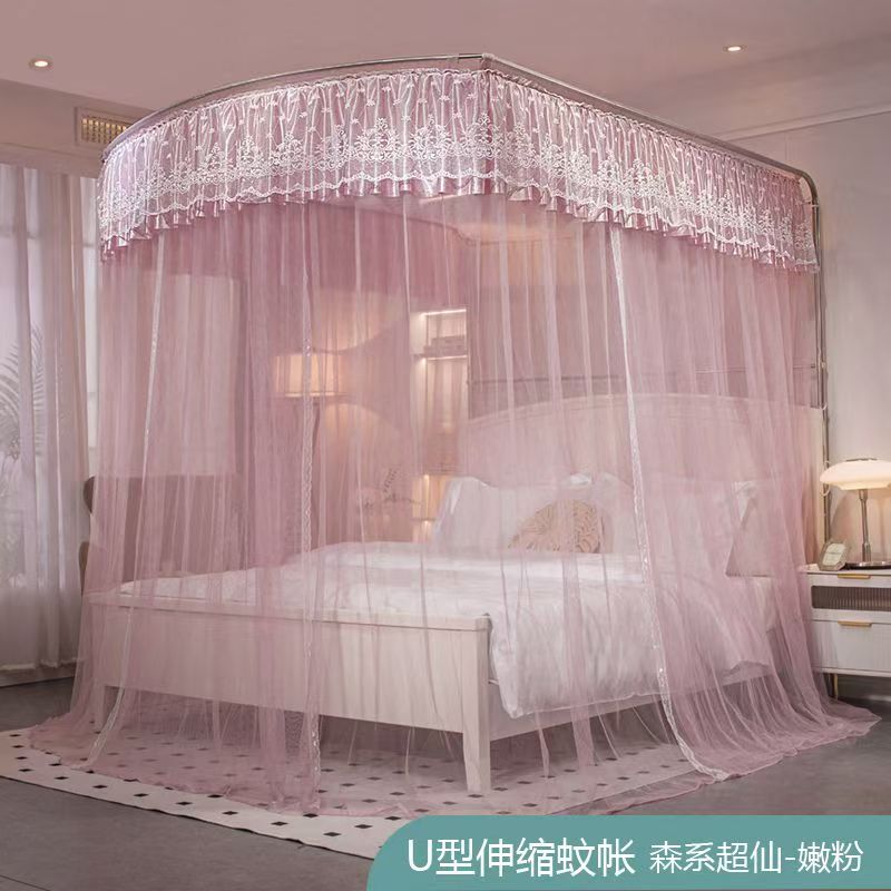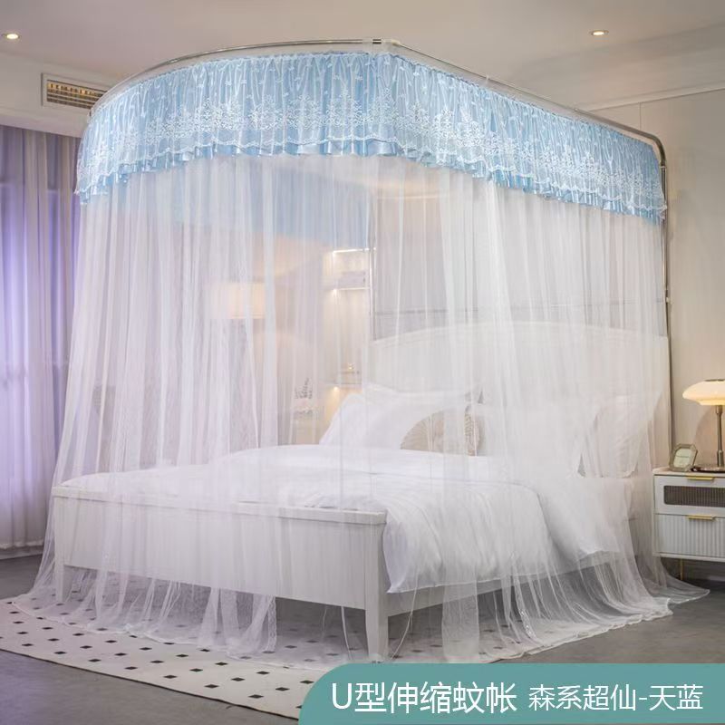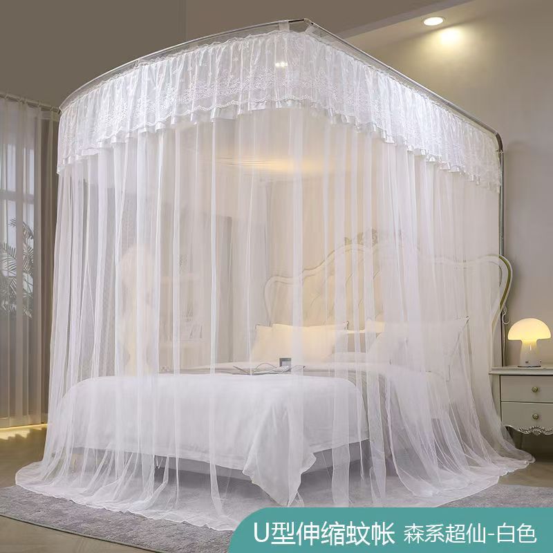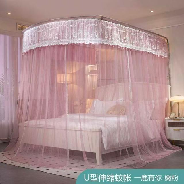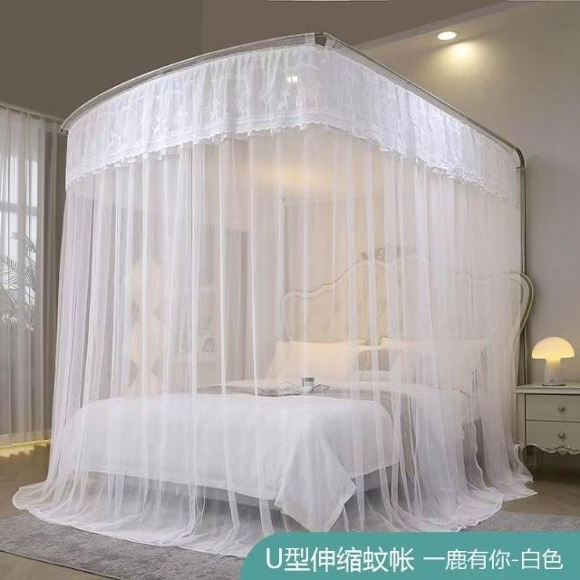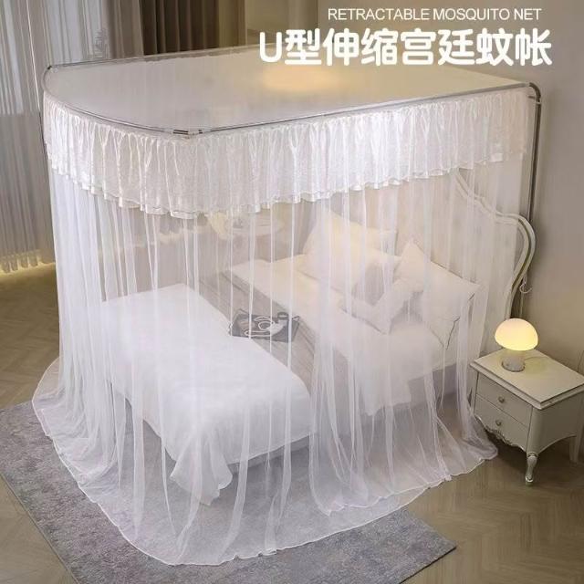 蚊帳 兒童床蚊帳 U型蚊帳 可伸縮 加大蚊帳 雙人蚊帳 防塵蚊帳 遮光蚊帳U型可伸縮宮廷風家用蚊帳2024新款三開門落地