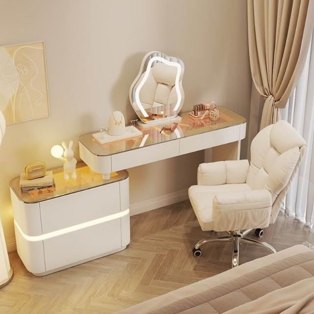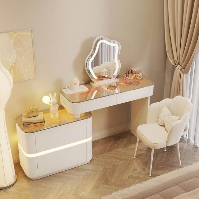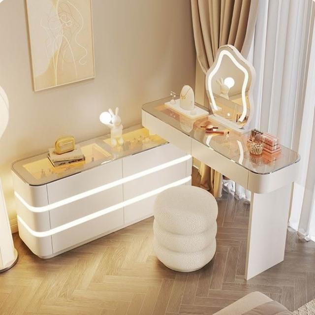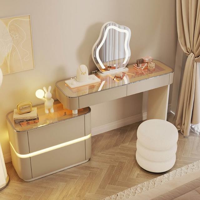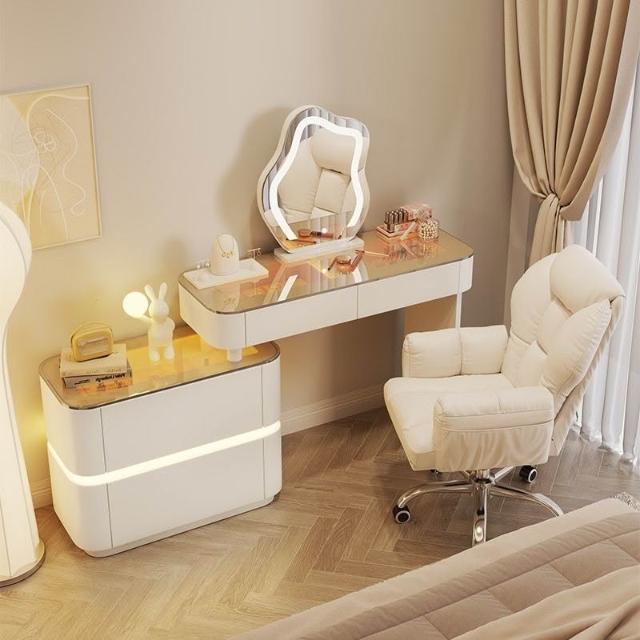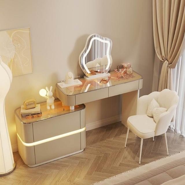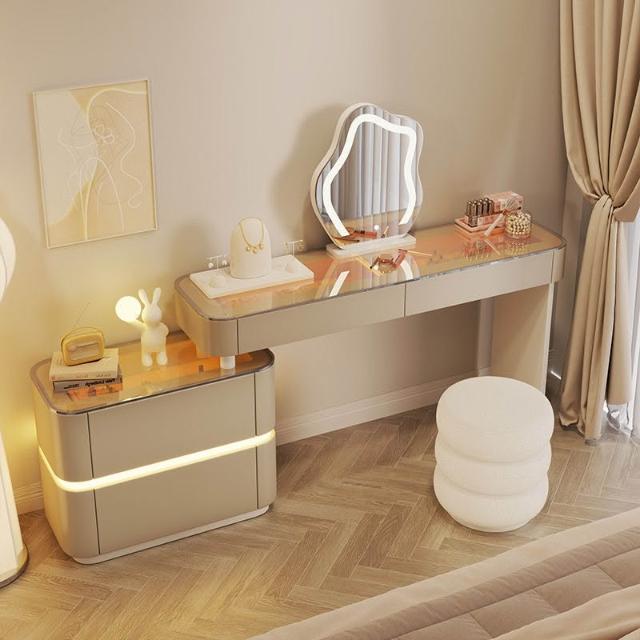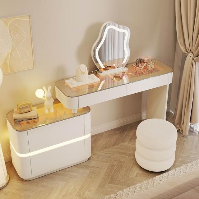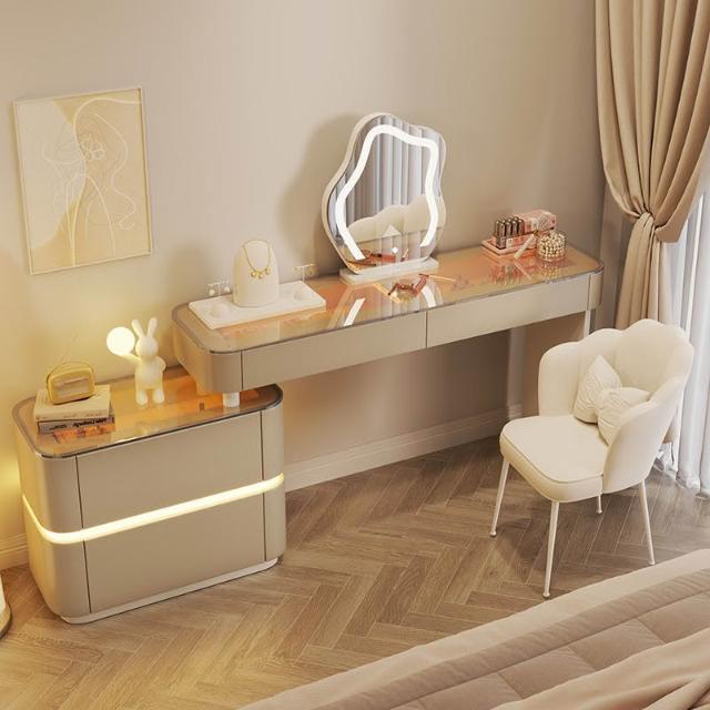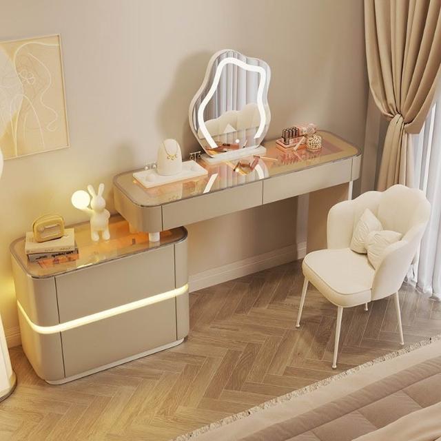 ⚡免運 可開票可擺L型梳妝台 實木岩板 梳妝台 卧室 現代簡約 收納櫃 轉角斗櫃 伸縮一體 化妝桌 化妝台 梳妝櫃