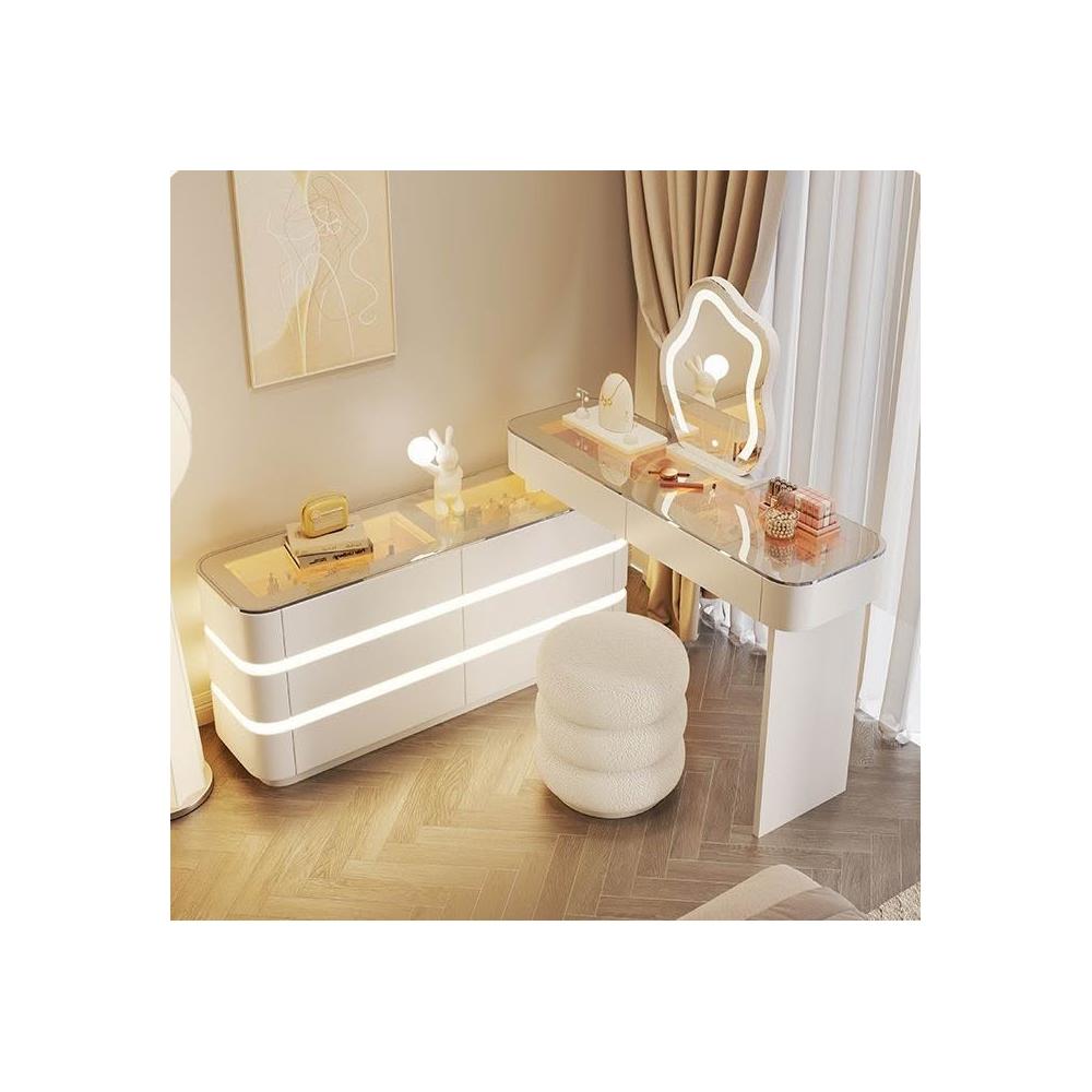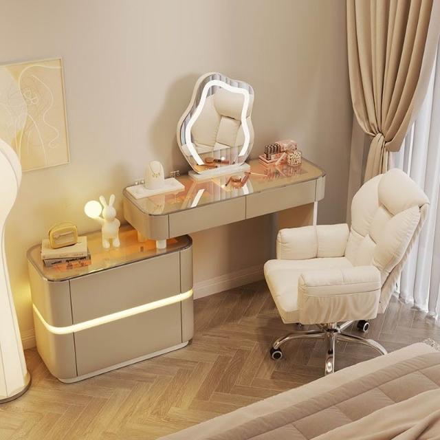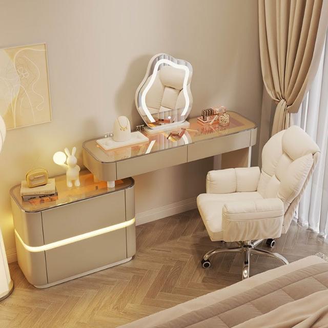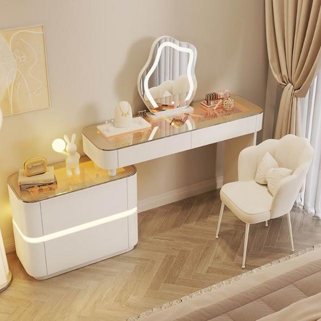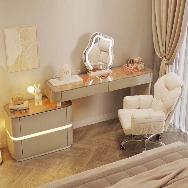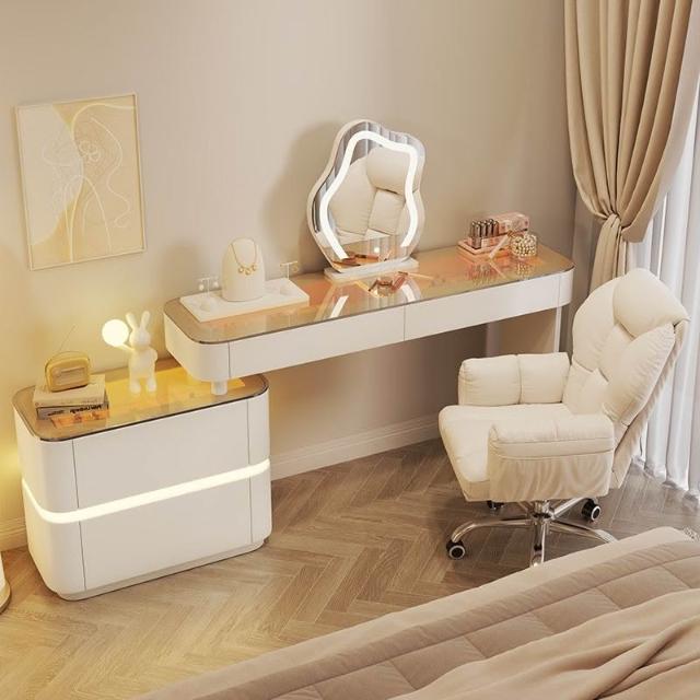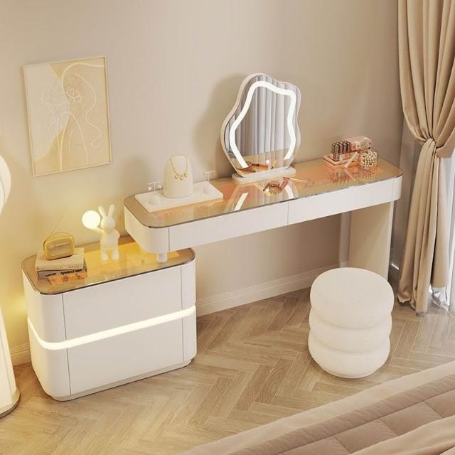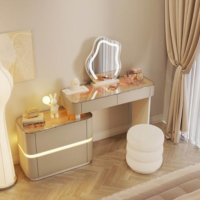 ⚡免運 可開票可擺L型梳妝台 實木岩板 梳妝台 卧室 現代簡約 收納櫃 轉角斗櫃 伸縮一體 化妝桌 化妝台 梳妝櫃