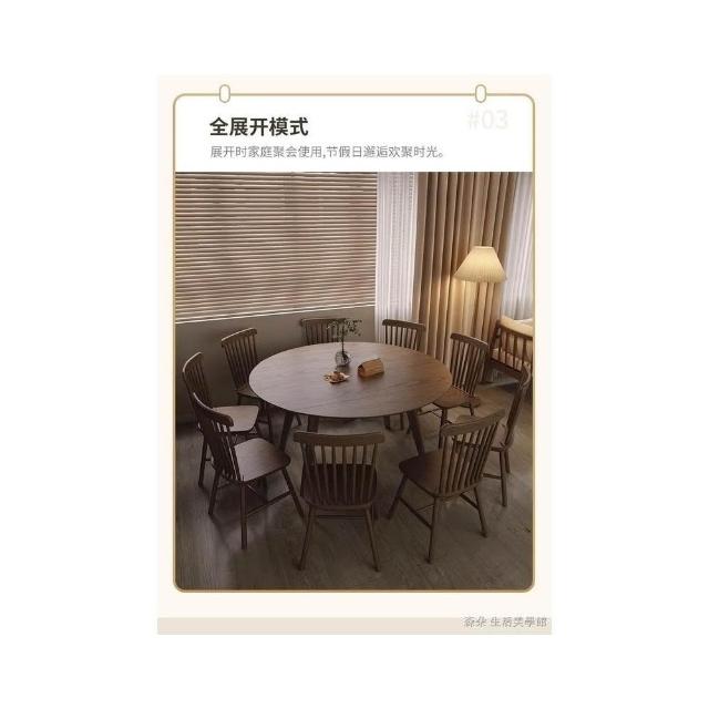 原木餐桌椅組合伸縮 實木折疊圓餐桌 延伸餐桌 家用小戶型餐桌椅圓形桌子可變桌可伸縮飯桌 靠牆桌 大餐桌 變形桌 6人桌