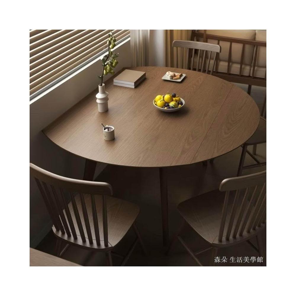 原木餐桌椅組合伸縮 實木折疊圓餐桌 延伸餐桌 家用小戶型餐桌椅圓形桌子可變桌可伸縮飯桌 靠牆桌 大餐桌 變形桌 6人桌