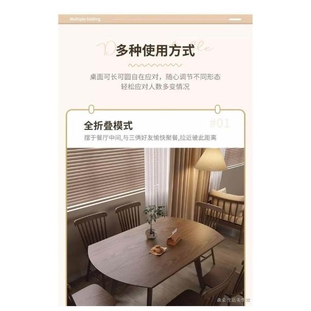 原木餐桌椅組合伸縮 實木折疊圓餐桌 延伸餐桌 家用小戶型餐桌椅圓形桌子可變桌可伸縮飯桌 靠牆桌 大餐桌 變形桌 6人桌