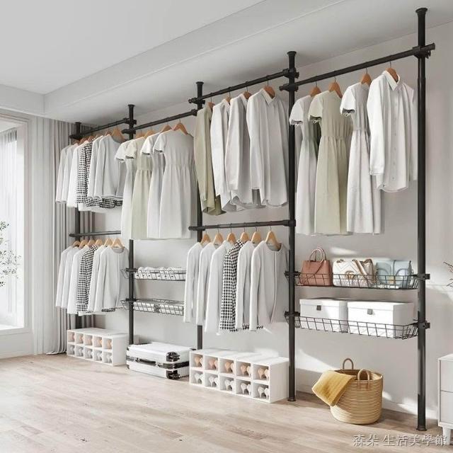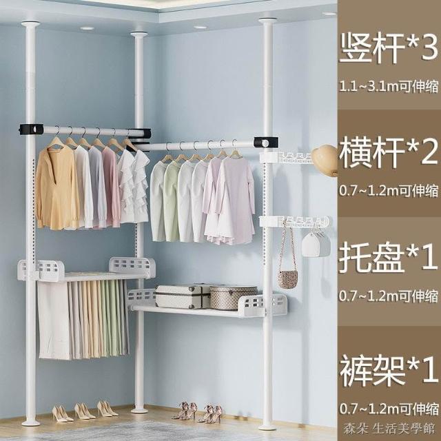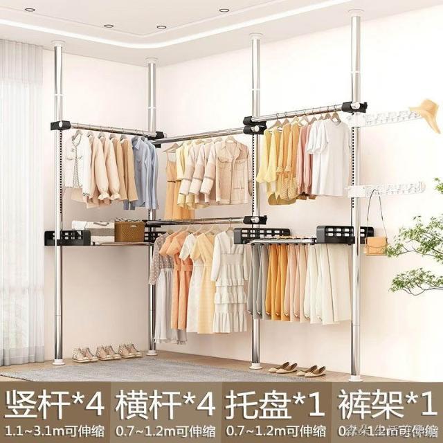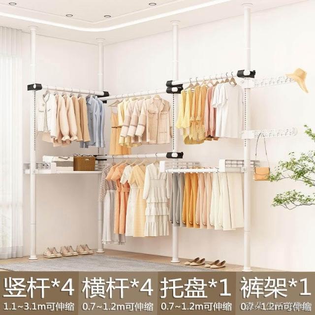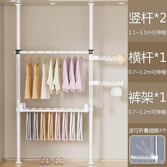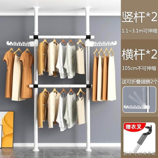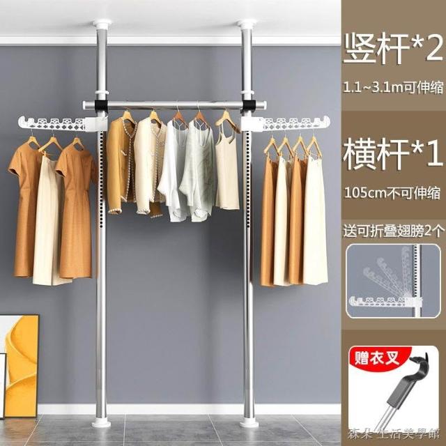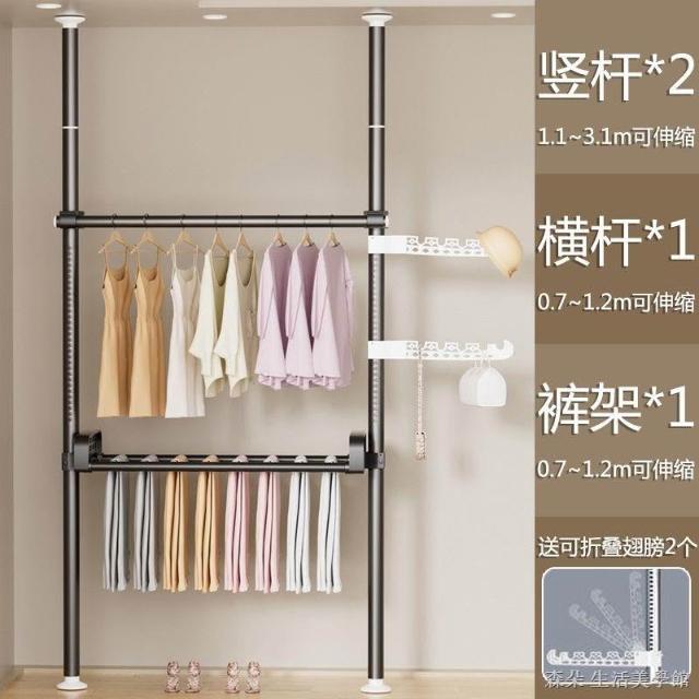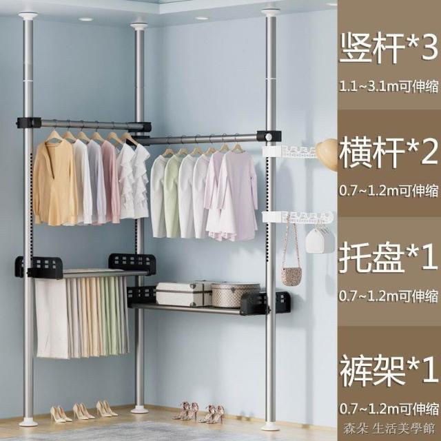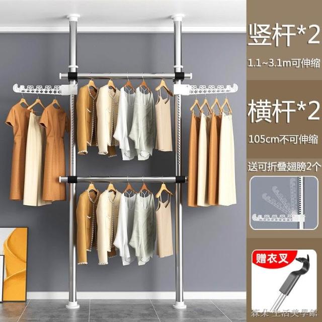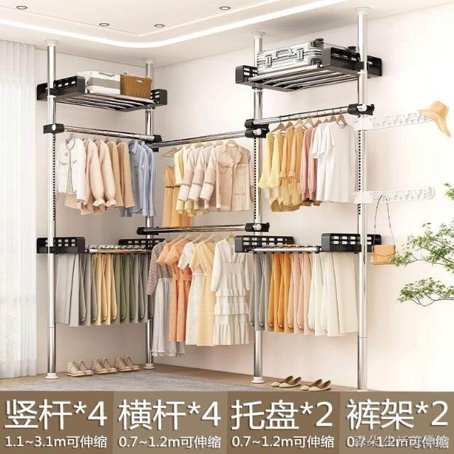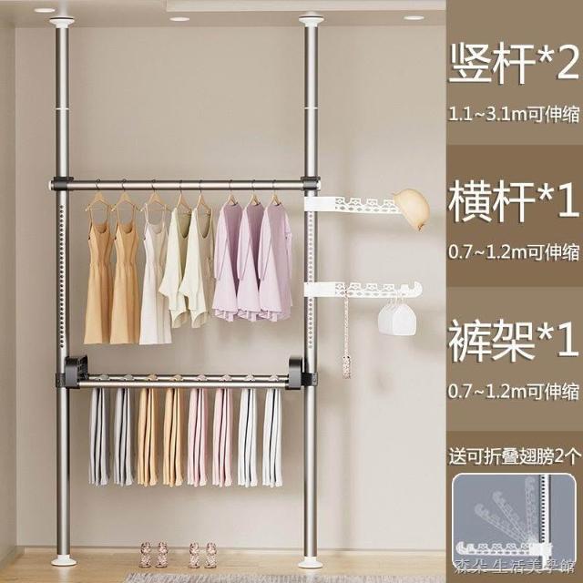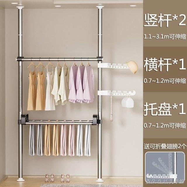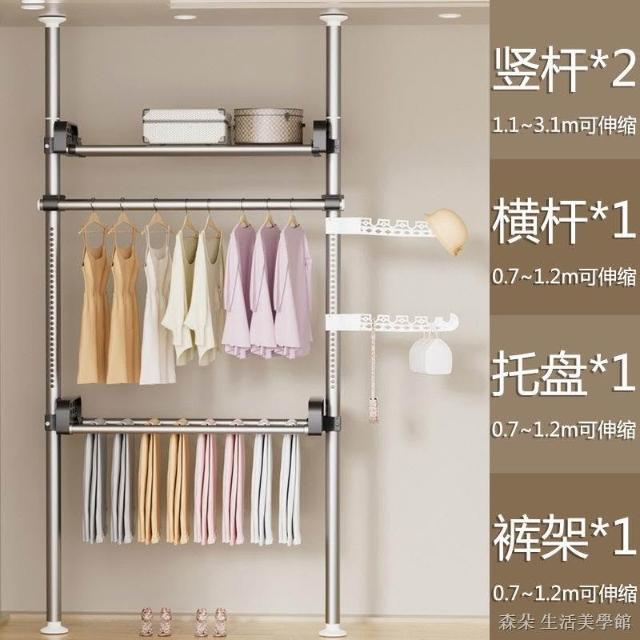 附發票 頂天立地衣架 不鏽鋼晾衣架 衣帽架 落地衣架桿 家用掛衣架 免打孔可伸縮調節晾衣桿 陽臺晾曬衣架 置衣架置物架