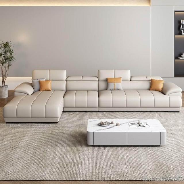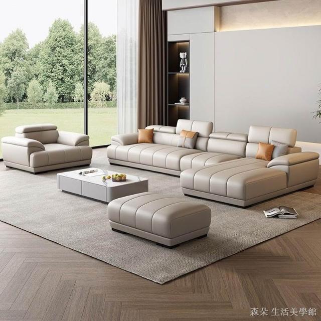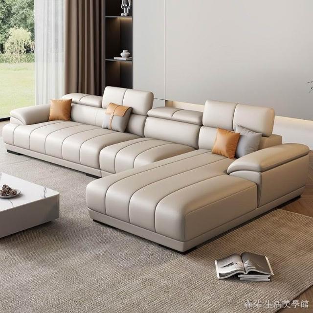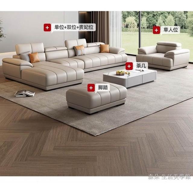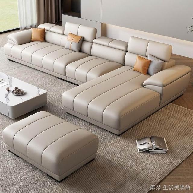皮沙發 大型沙發 四人座 三人座 現代簡約真皮沙發 頭層牛皮 牛皮l沙發組 客廳大戶型貴妃組合鋼琴鍵皮藝沙發