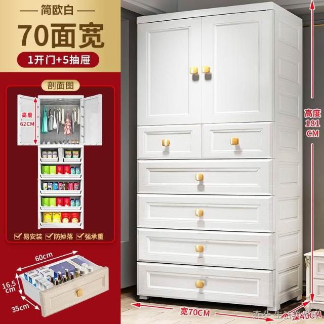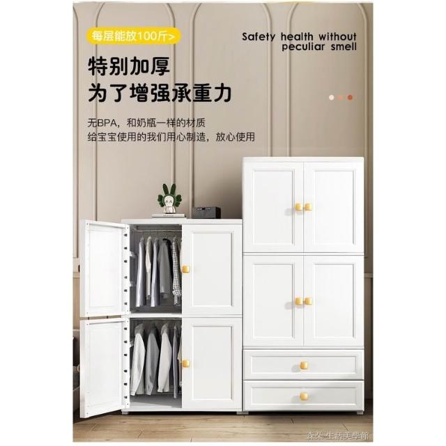附發票 兒童衣櫥收納櫃 70公分寬度 北歐風白色衣櫃 雙開門收納櫃 寶寶衣櫃 掛衣式隔層式儲物櫃抽屜櫃子 雙門衣櫃