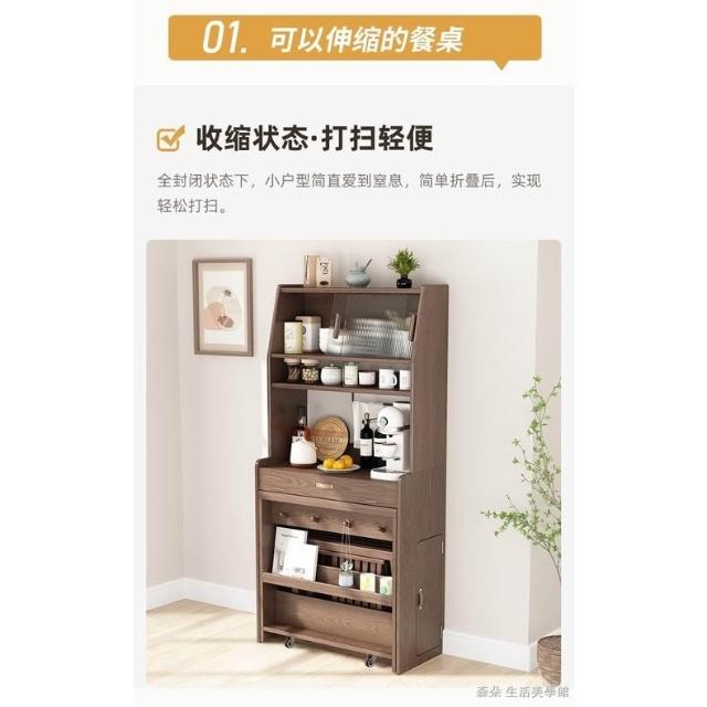 實木變形桌 餐桌折疊伸縮家用小戶型隱形飯桌 餐邊櫃一體多功能收納桌子 原木靠牆桌 延伸餐桌 組合桌 長型餐桌