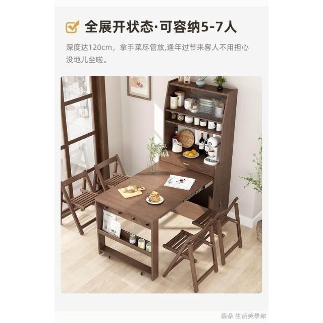 實木變形桌 餐桌折疊伸縮家用小戶型隱形飯桌 餐邊櫃一體多功能收納桌子 原木靠牆桌 延伸餐桌 組合桌 長型餐桌