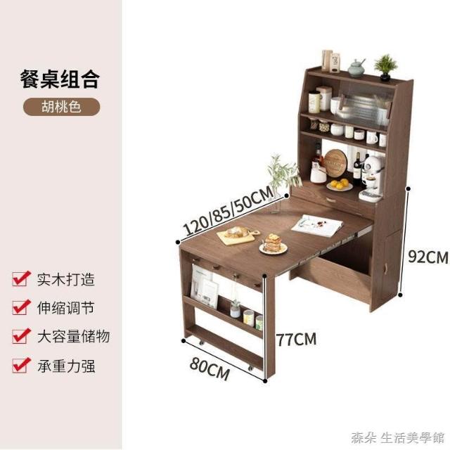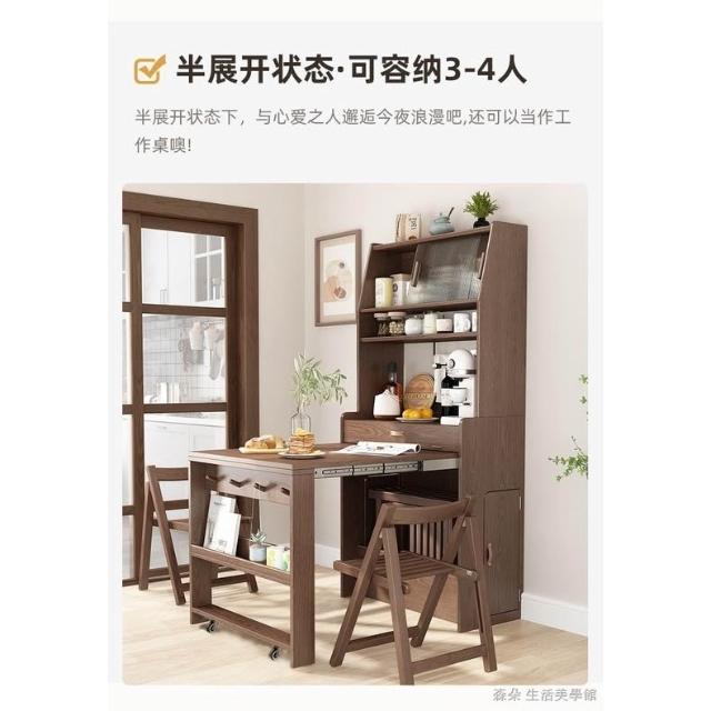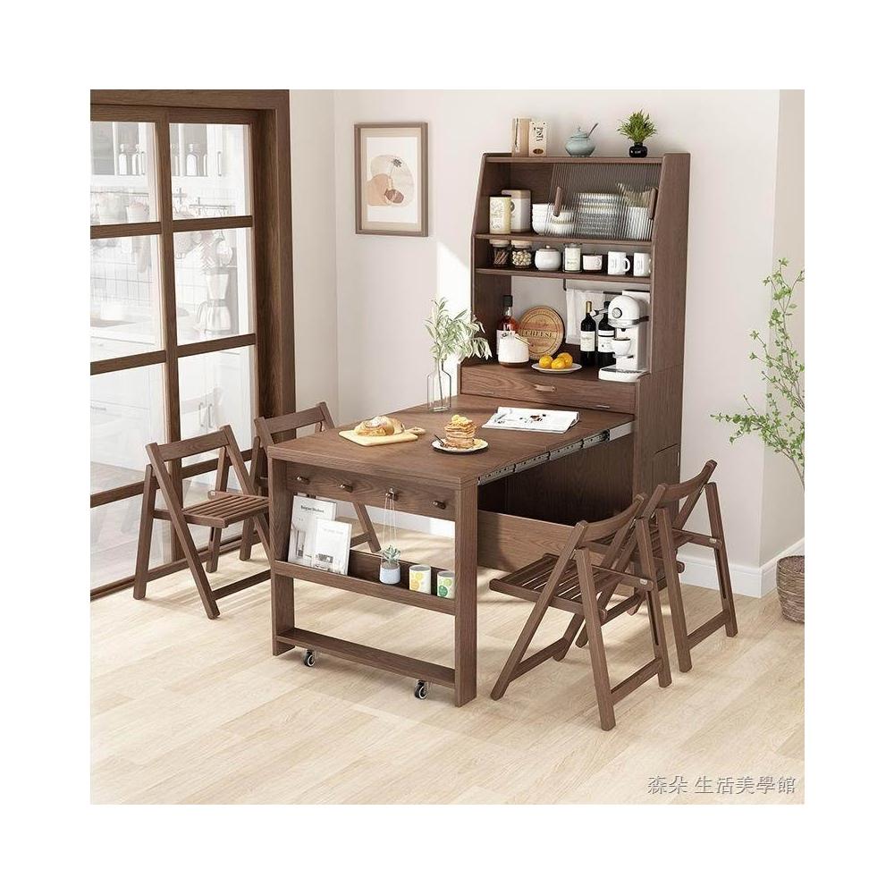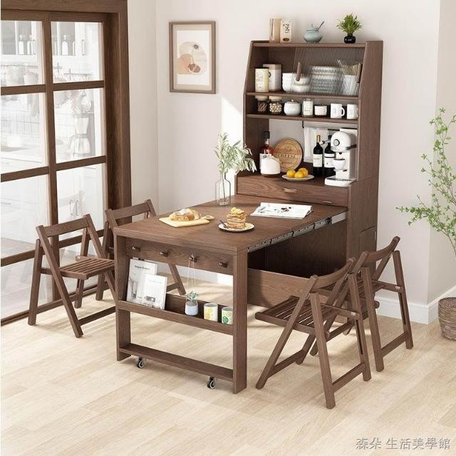 實木變形桌 餐桌折疊伸縮家用小戶型隱形飯桌 餐邊櫃一體多功能收納桌子 原木靠牆桌 延伸餐桌 組合桌 長型餐桌