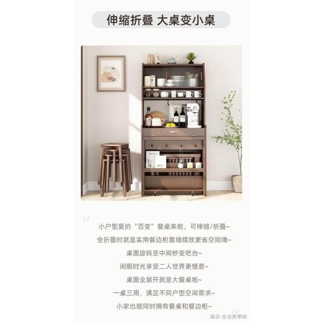 實木變形桌 餐桌折疊伸縮家用小戶型隱形飯桌 餐邊櫃一體多功能收納桌子 原木靠牆桌 延伸餐桌 組合桌 長型餐桌