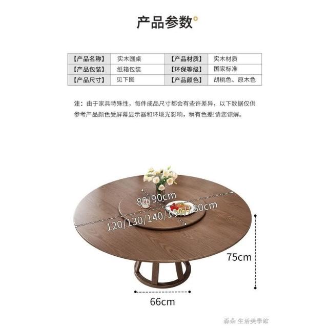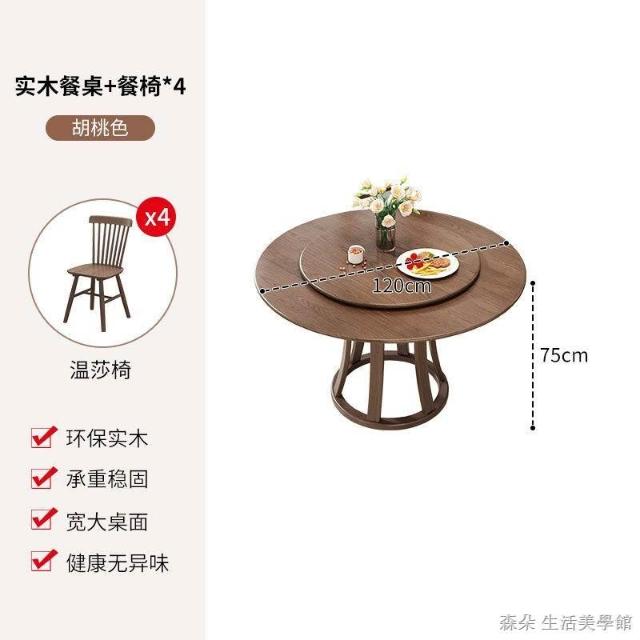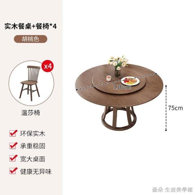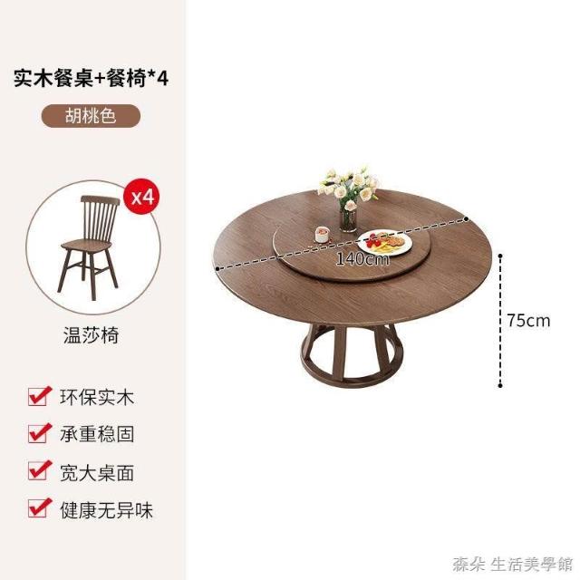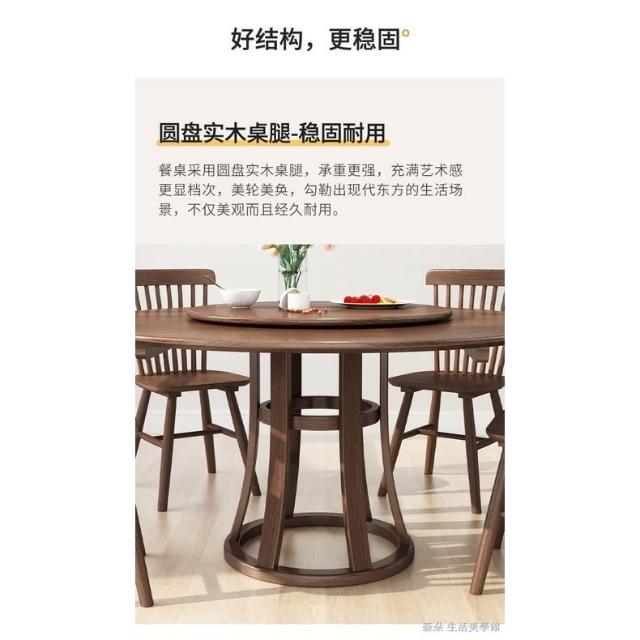 原木原木餐桌椅組 圓型餐桌 大餐桌 北歐簡約現代飯桌 家用實木組合圓桌 小戶型旋轉餐桌 8人餐桌