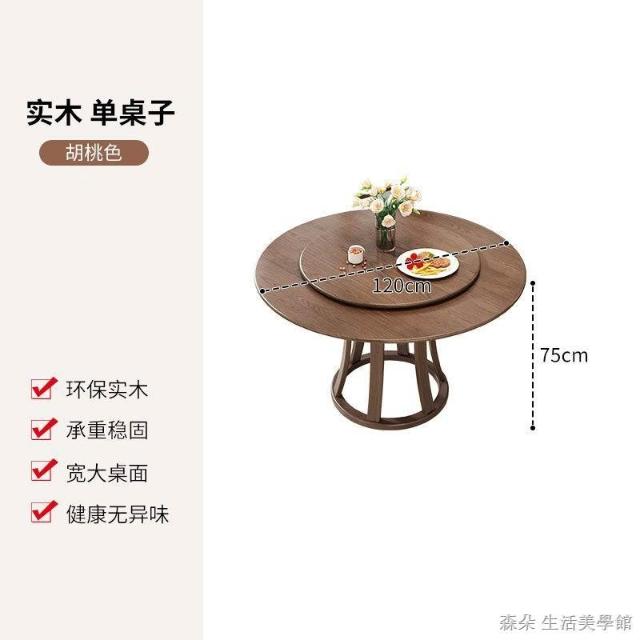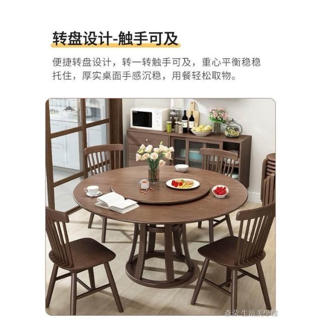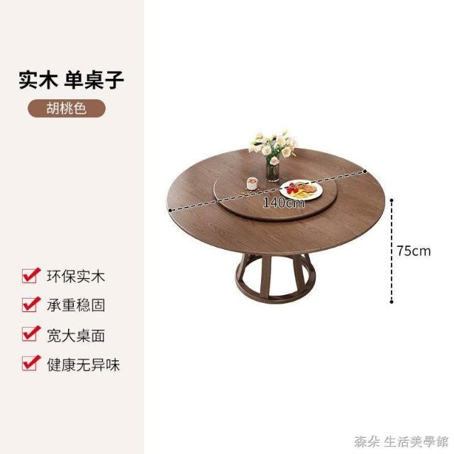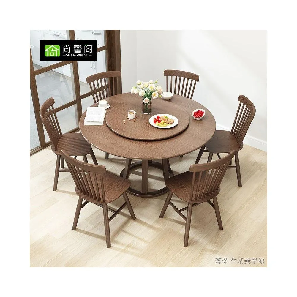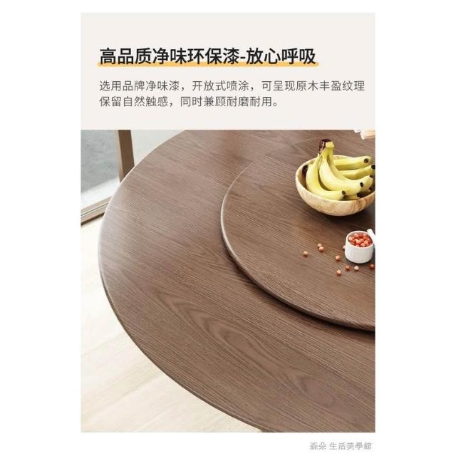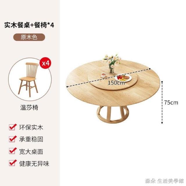 原木原木餐桌椅組 圓型餐桌 大餐桌 北歐簡約現代飯桌 家用實木組合圓桌 小戶型旋轉餐桌 8人餐桌