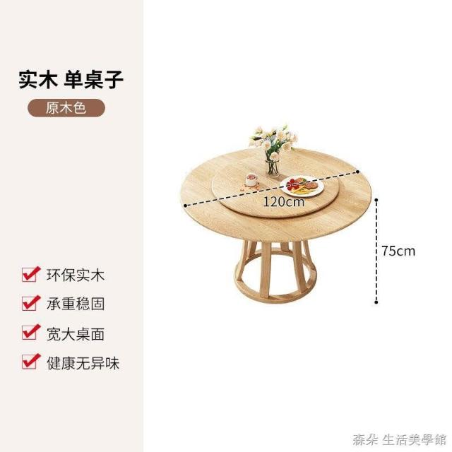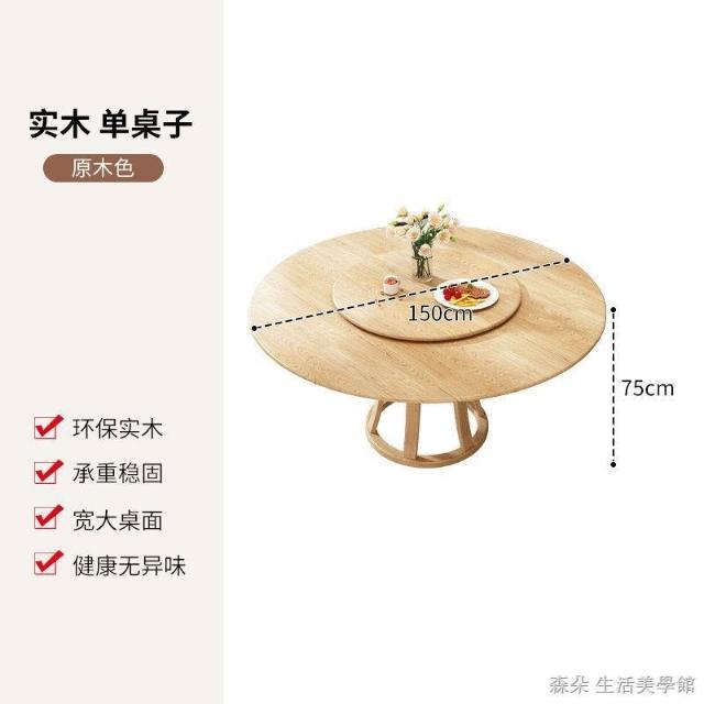 原木原木餐桌椅組 圓型餐桌 大餐桌 北歐簡約現代飯桌 家用實木組合圓桌 小戶型旋轉餐桌 8人餐桌
