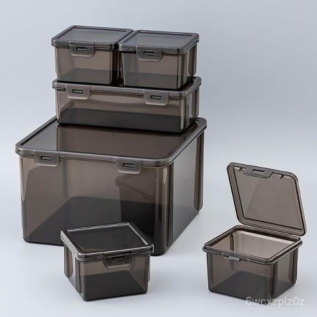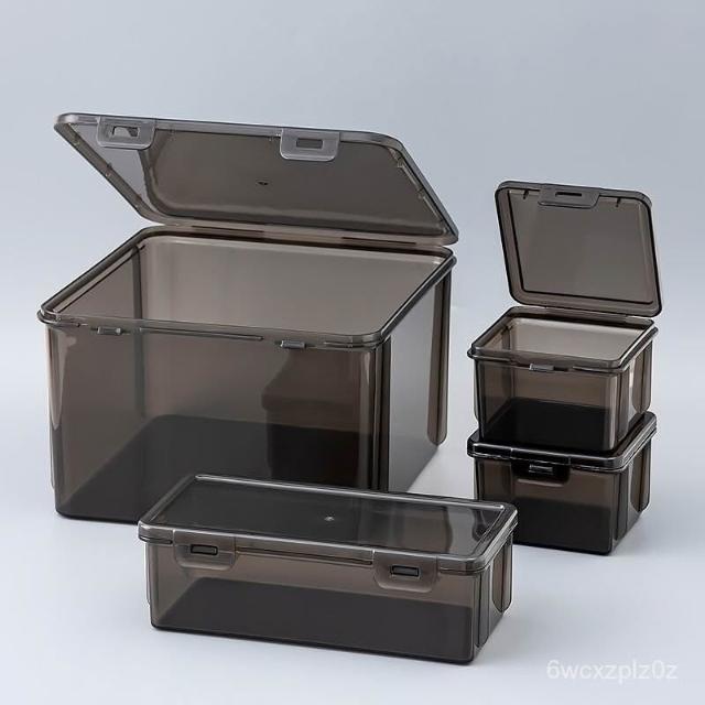 掀蓋收納盒 桌麵雜物收納盒黑色透明避光整理盒多功能儲物盒方形盒子防塵帶蓋