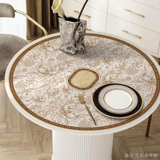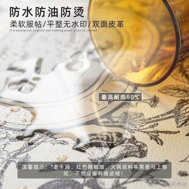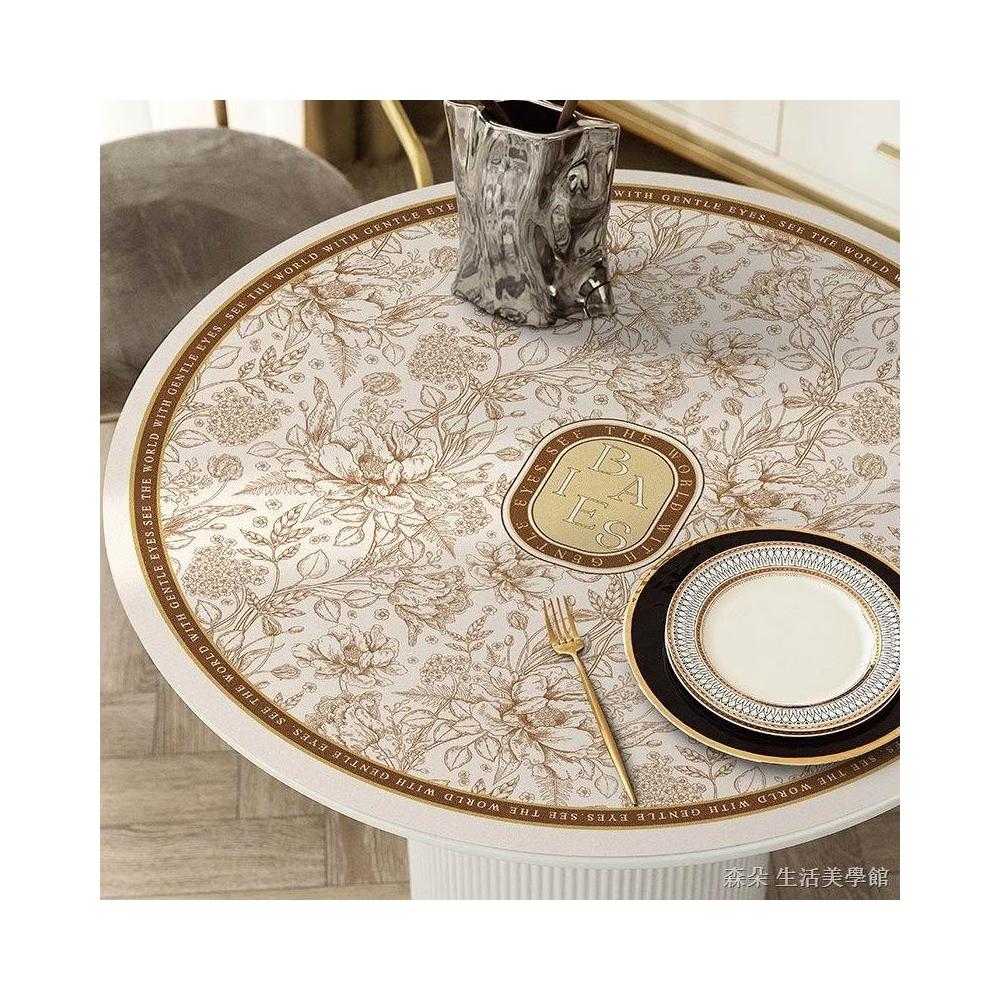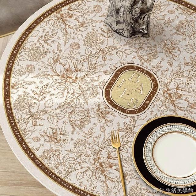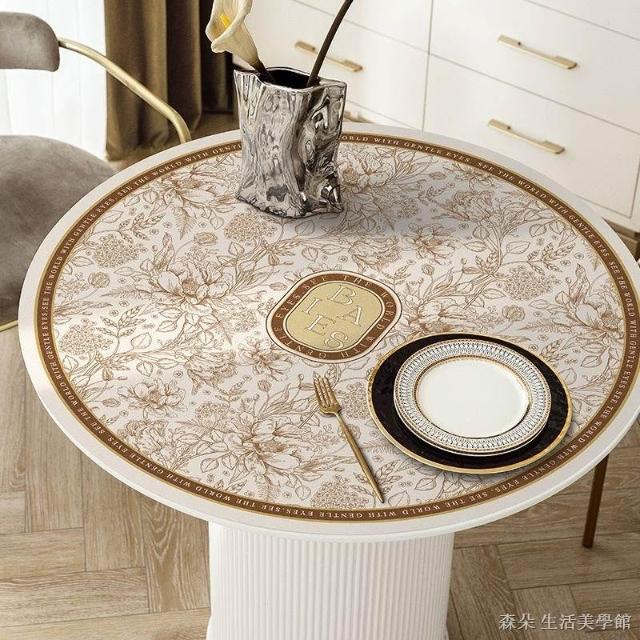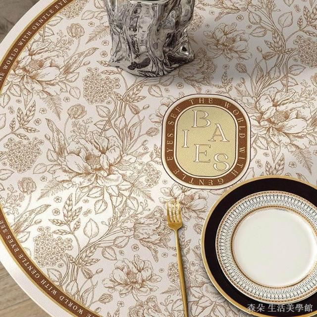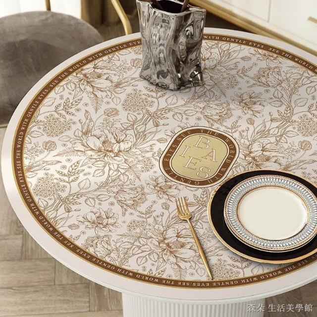 鄉村風桌巾 皮革桌布 皮桌墊 餐桌佈置 現代輕奢皮革圓桌餐桌墊隔熱圓形桌墊防油防水茶幾墊餐桌臺布 圓型桌墊