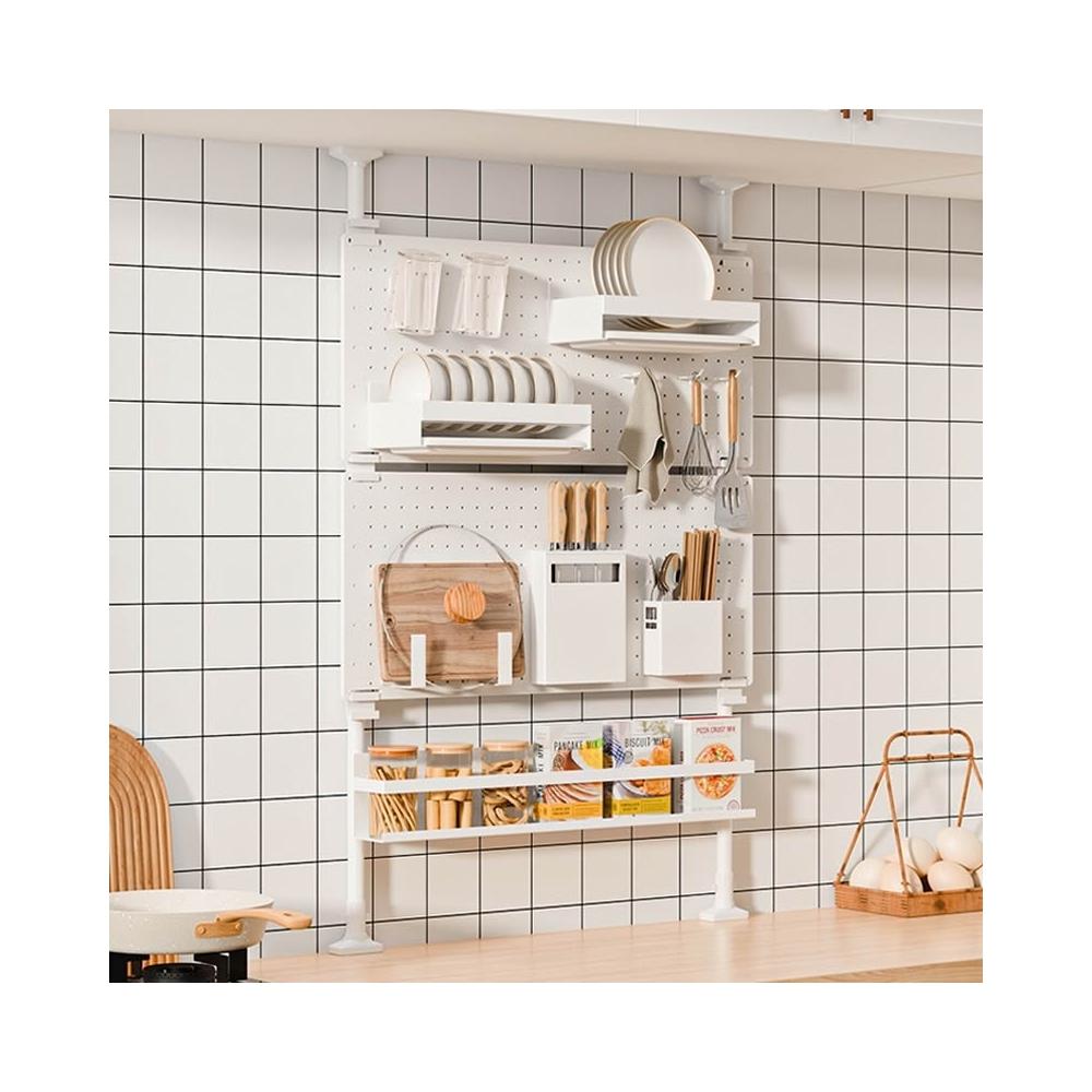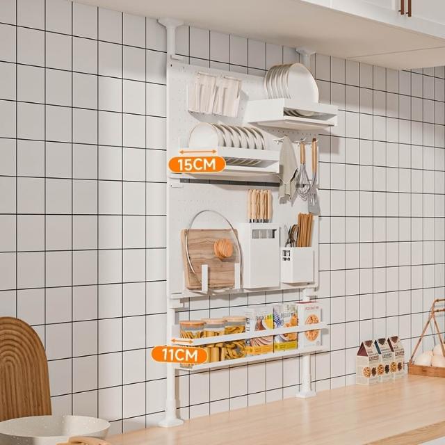 白色廚房頂天立地洞洞板置物架 免打孔櫥櫃下水槽可伸縮免釘直立式洞洞板立架 窗臺碗盤收納架 碗碟瀝水架 調料架 天花板層架