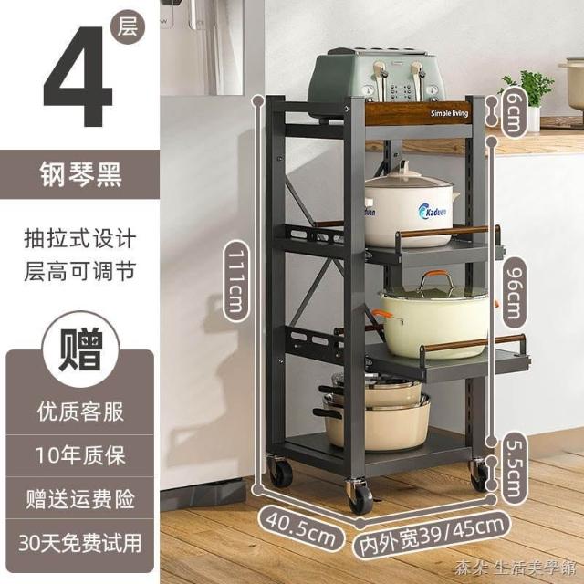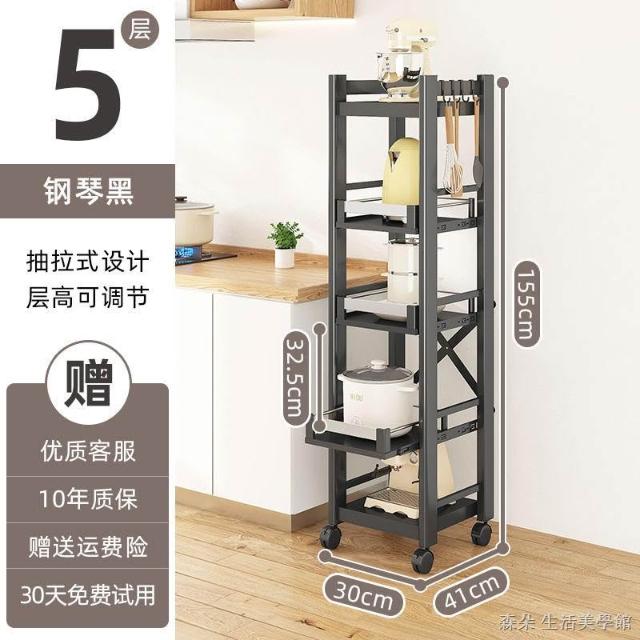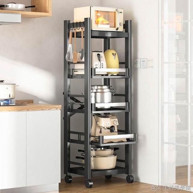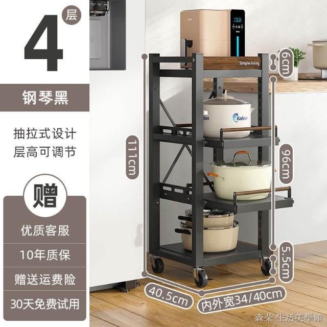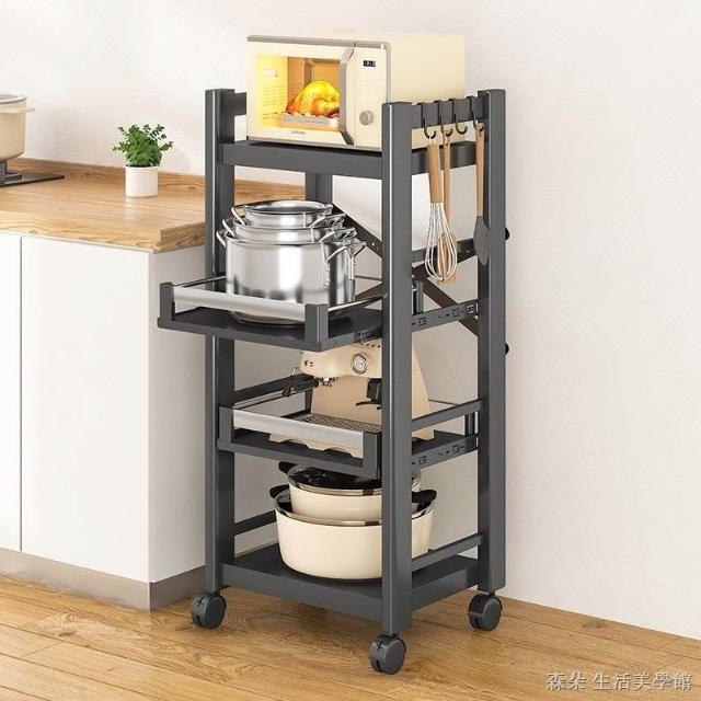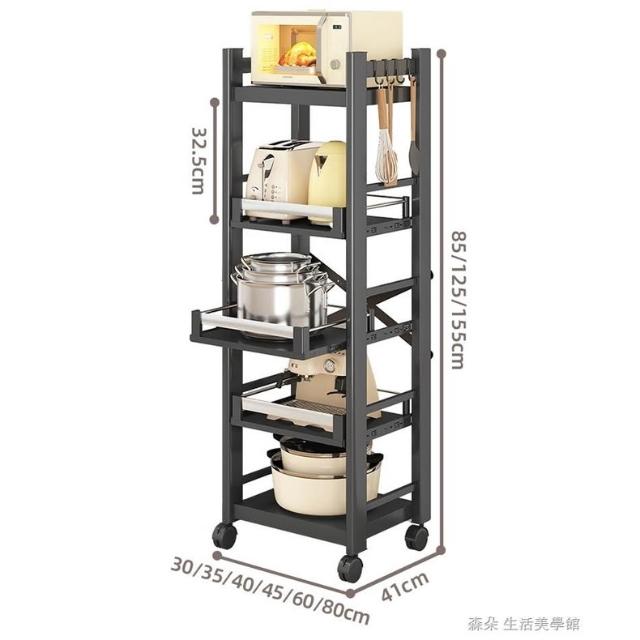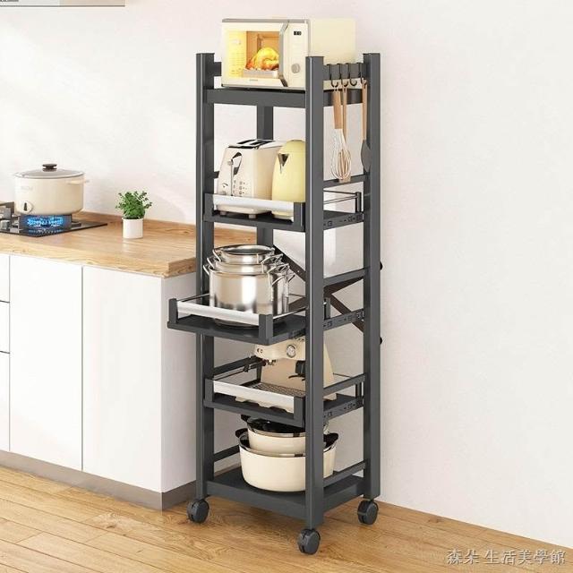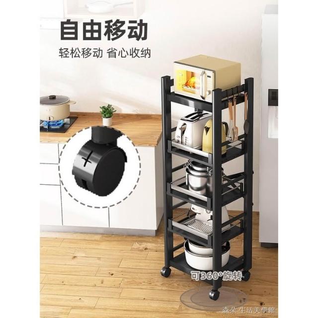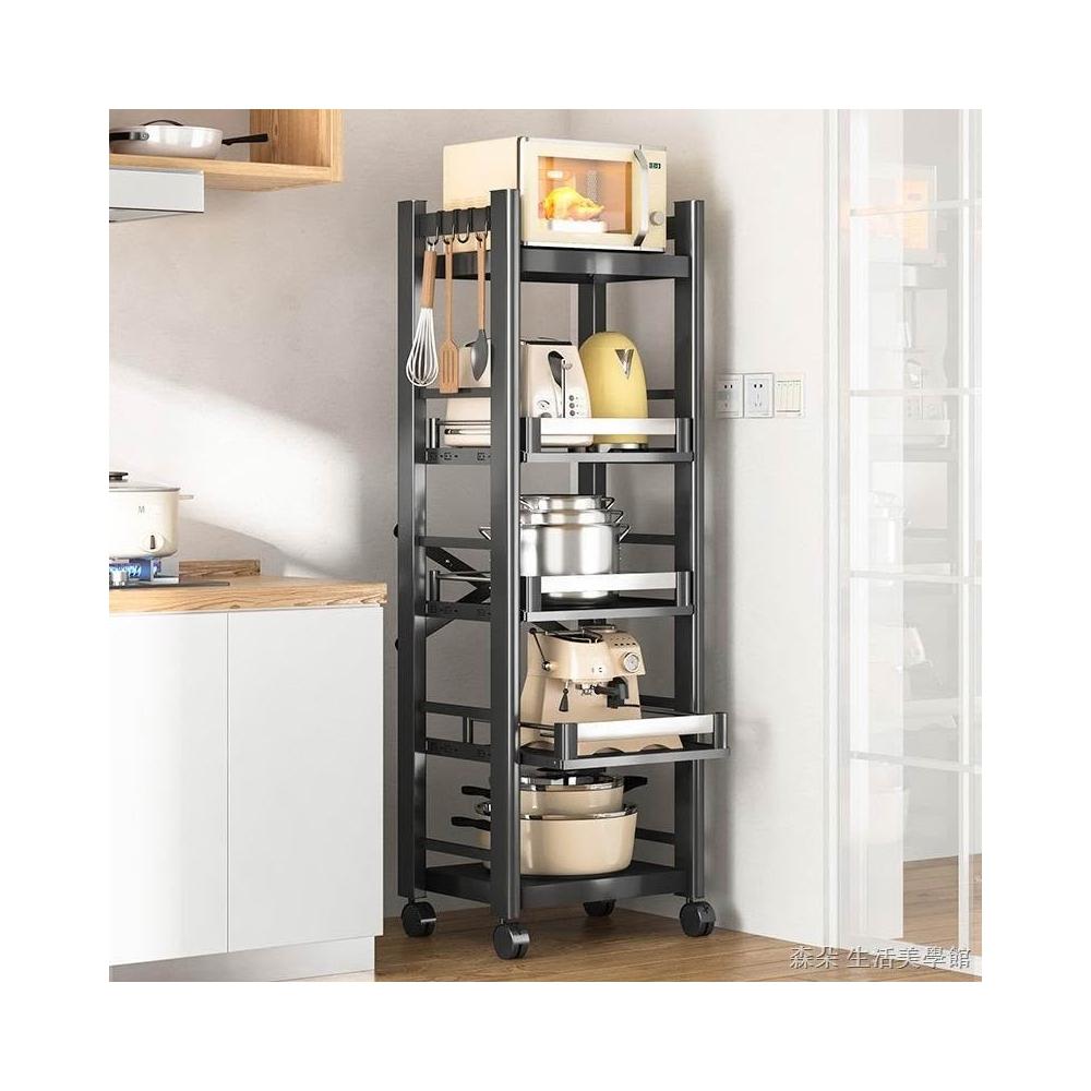 廚房抽拉式置物架推車折叠落地多層夾縫抽拉櫃 抽拉電器架微波爐分層鐵架層架 多功能儲物鍋架鍋具收納架 墻角滾輪置物鐵架子
