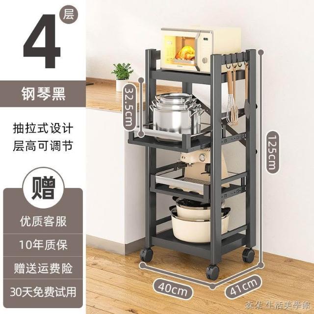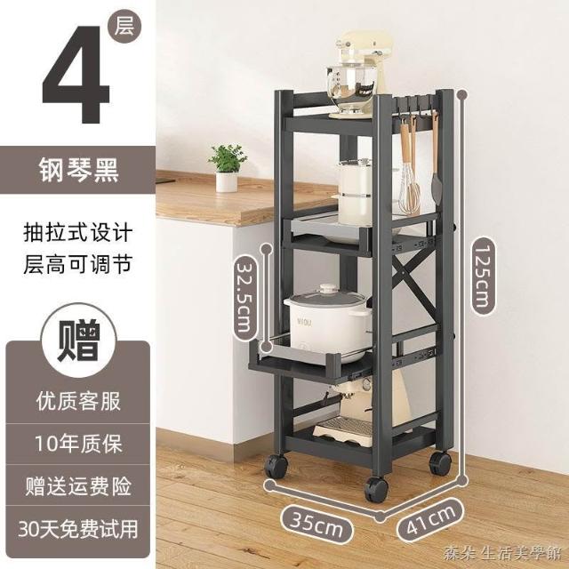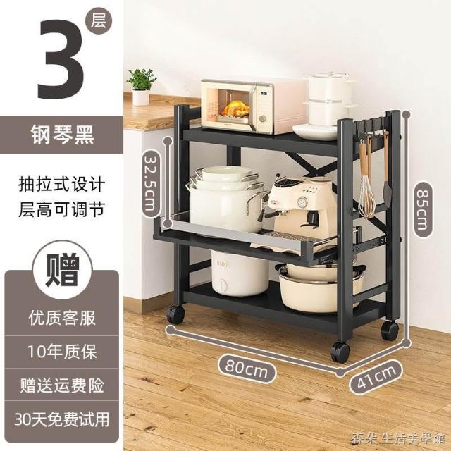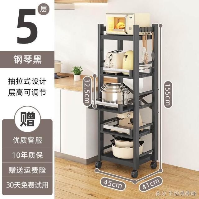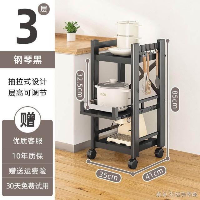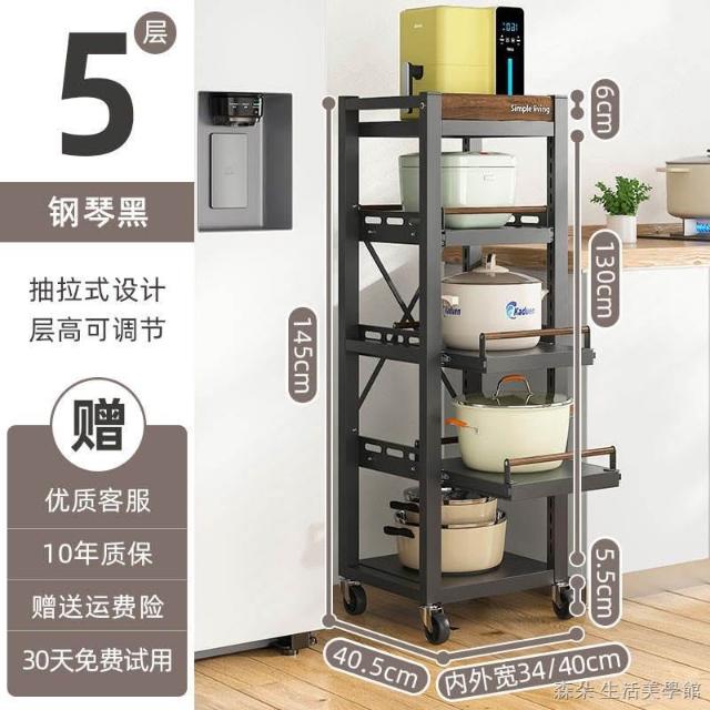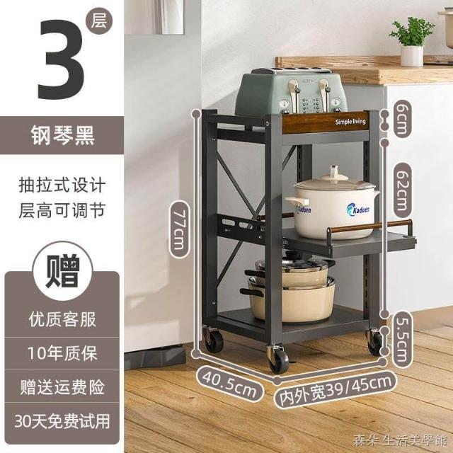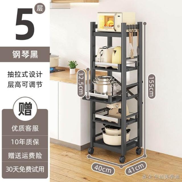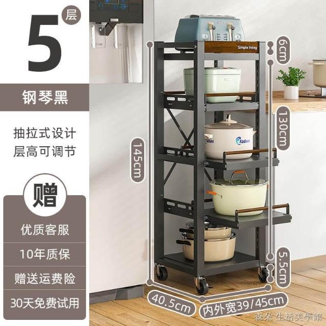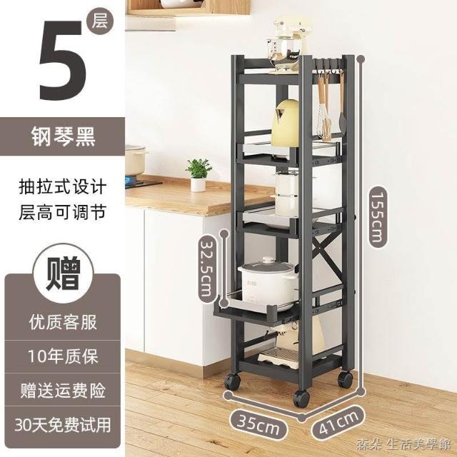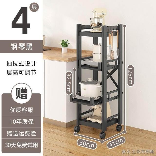 廚房抽拉式置物架推車折叠落地多層夾縫抽拉櫃 抽拉電器架微波爐分層鐵架層架 多功能儲物鍋架鍋具收納架 墻角滾輪置物鐵架子