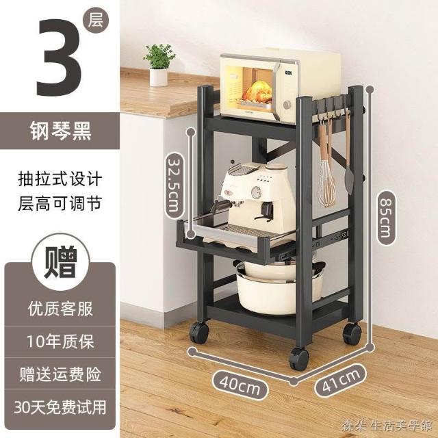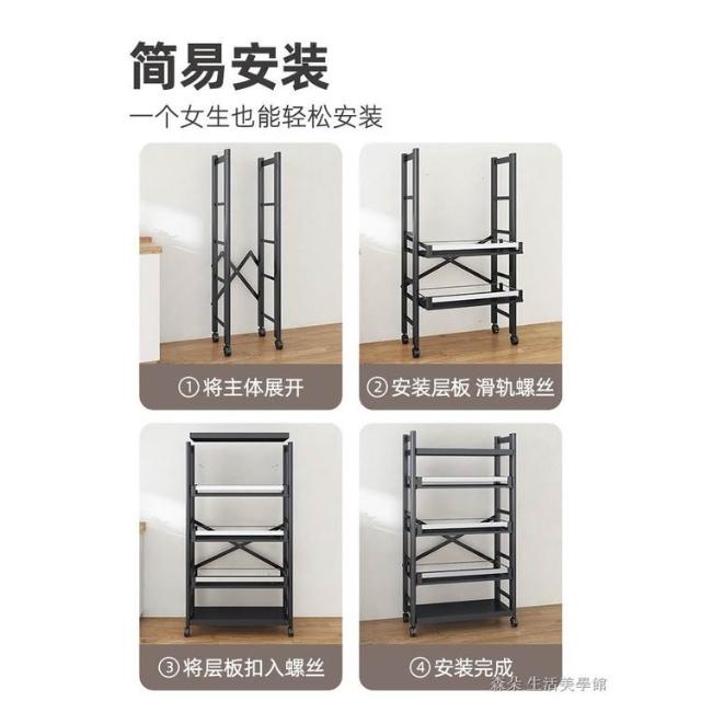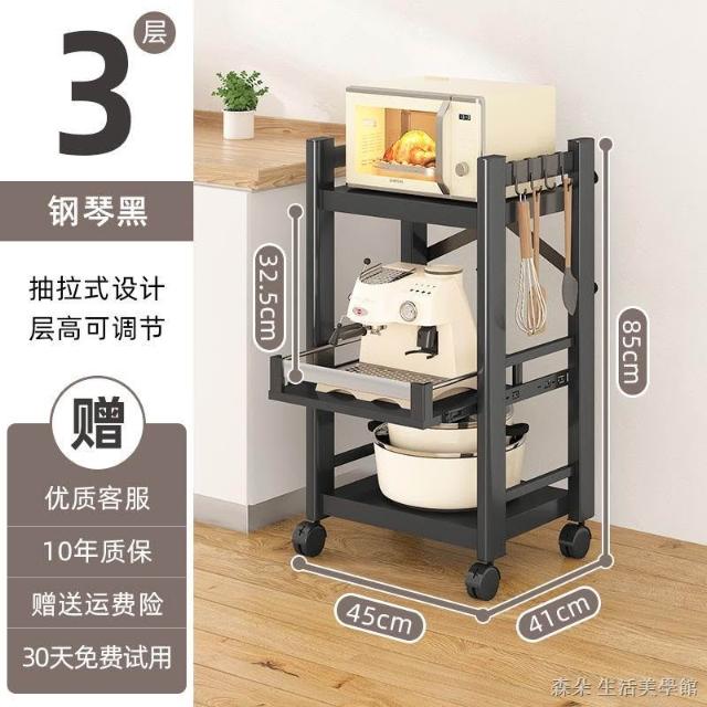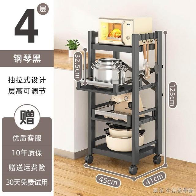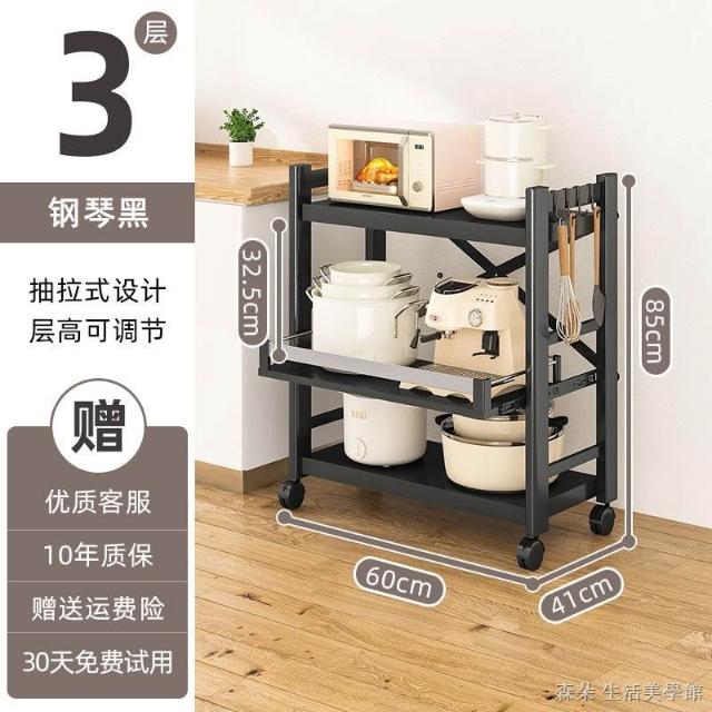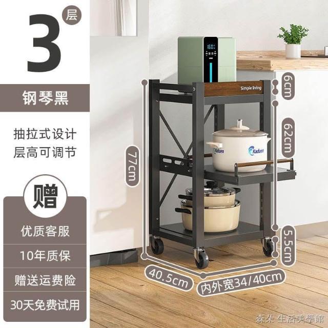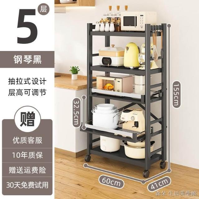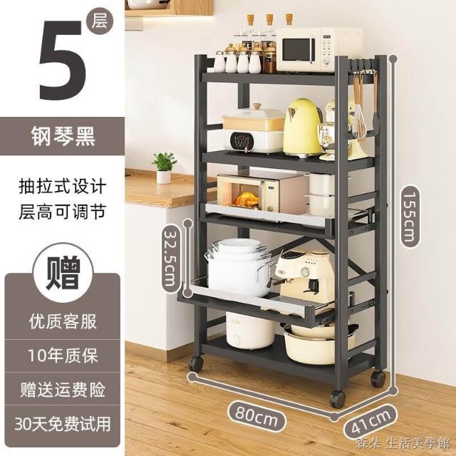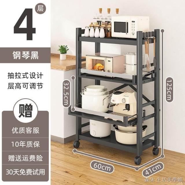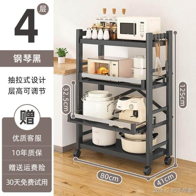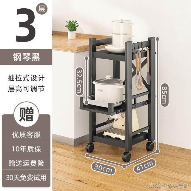 廚房抽拉式置物架推車折叠落地多層夾縫抽拉櫃 抽拉電器架微波爐分層鐵架層架 多功能儲物鍋架鍋具收納架 墻角滾輪置物鐵架子