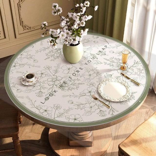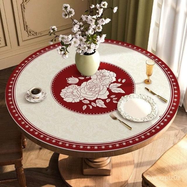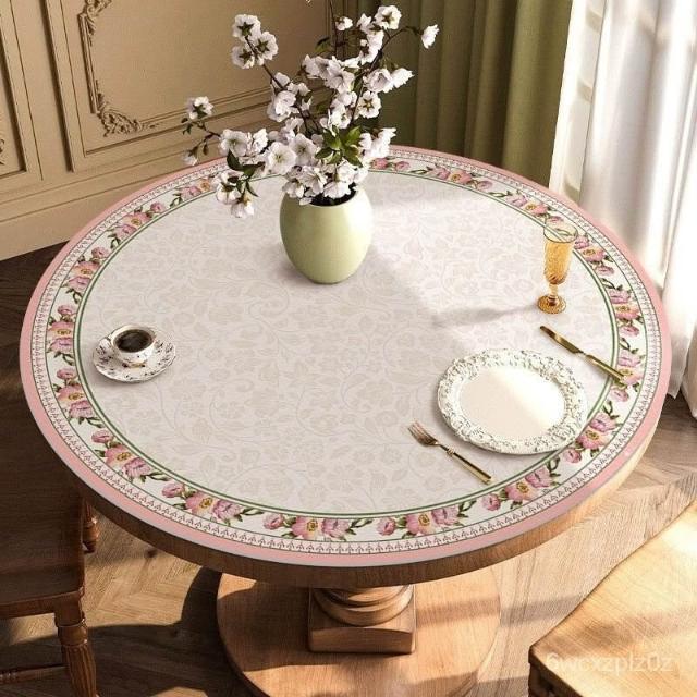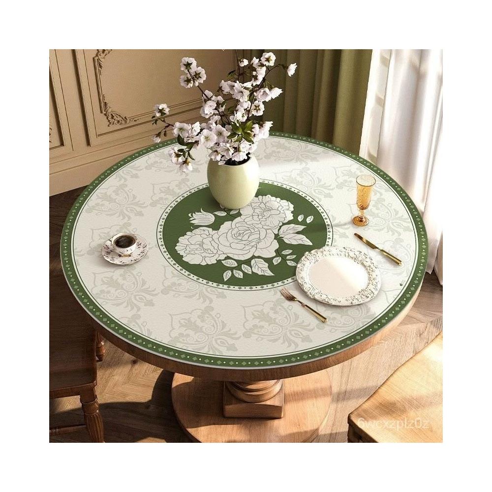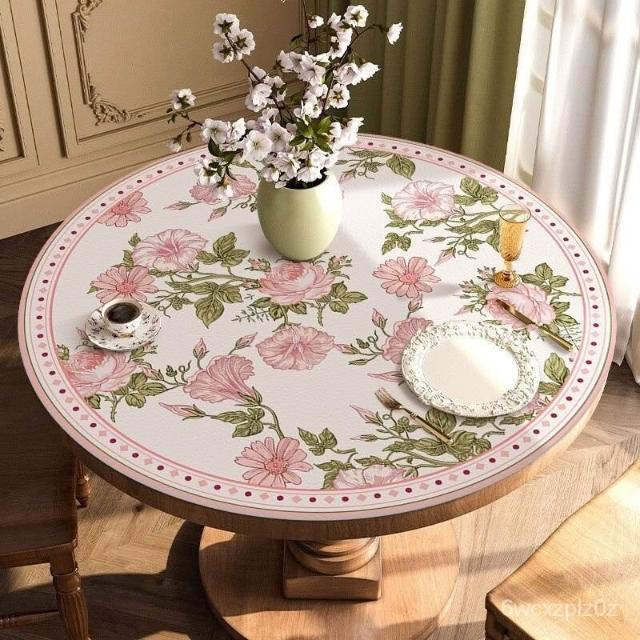 鄉村風桌巾 圓桌 皮革桌墊 圓桌墊 圓桌巾 防水 輕奢美式圓桌桌布免洗防水防油防燙餐桌墊複古皮革圓形茶幾墊子