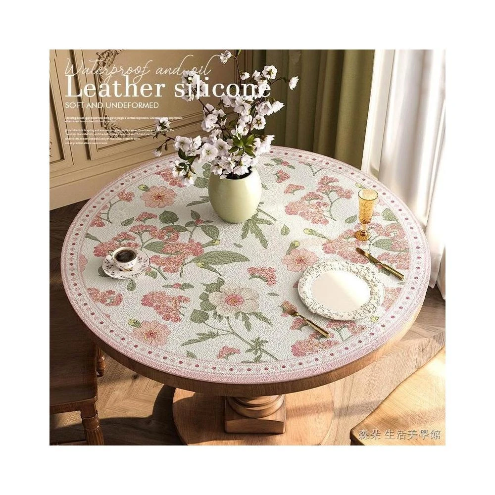 鄉村風桌巾 皮革桌布 客製桌墊 皮桌墊 美式花卉皮革圓桌桌布防水防油免洗餐桌墊復古皮革圓形茶幾墊子 圓型桌墊
