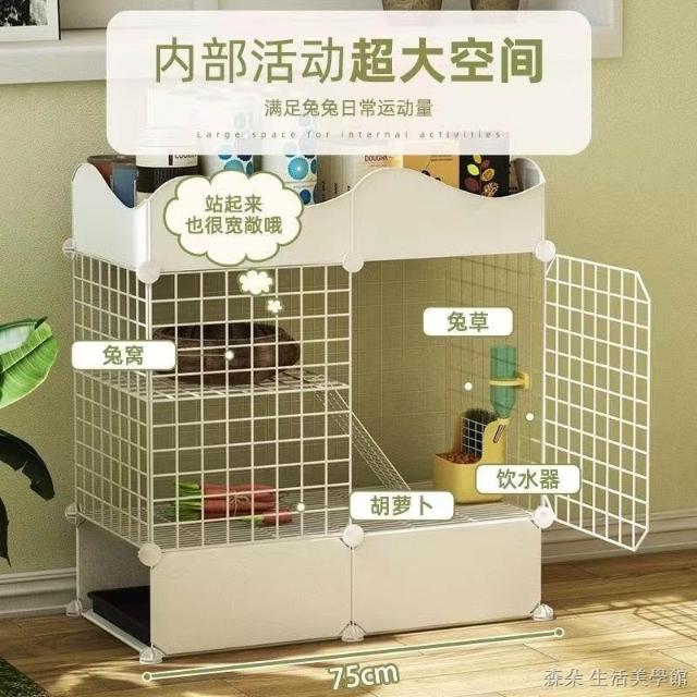 兔子圍欄 兔子柵欄 圍籬 兔子用品籠子 兔籠子家用室內大號雙層兔窩寵物籠帶廁所加密兔籠防噴濺多層別墅