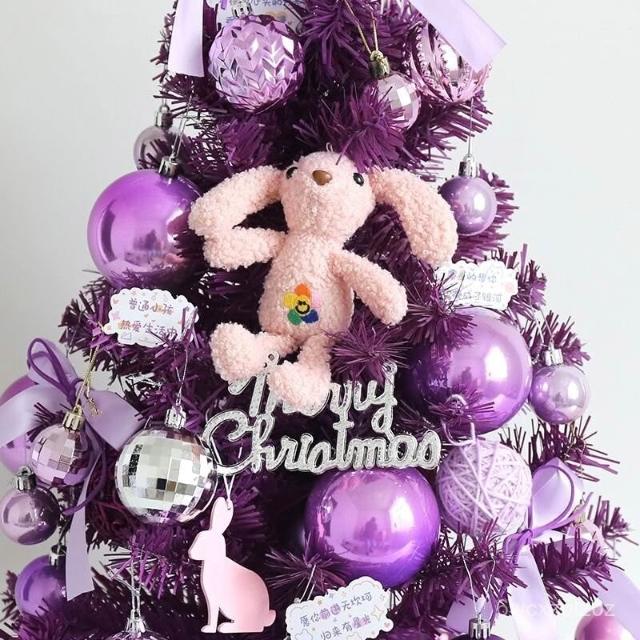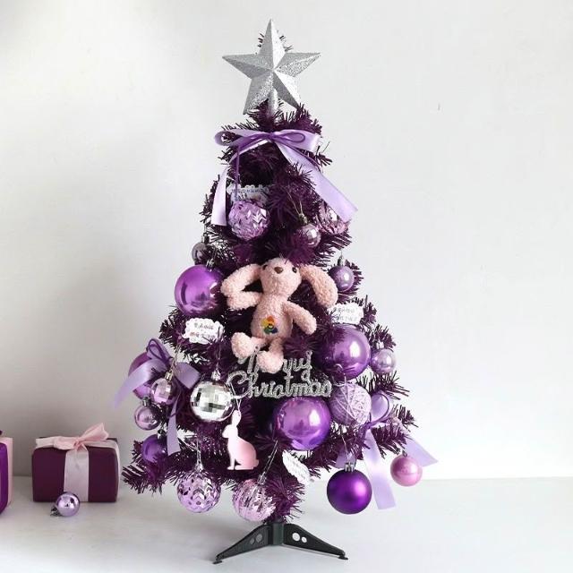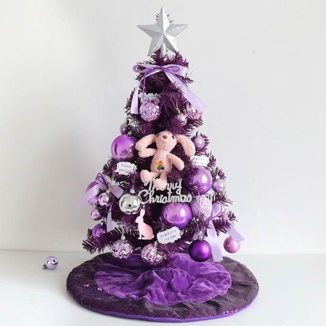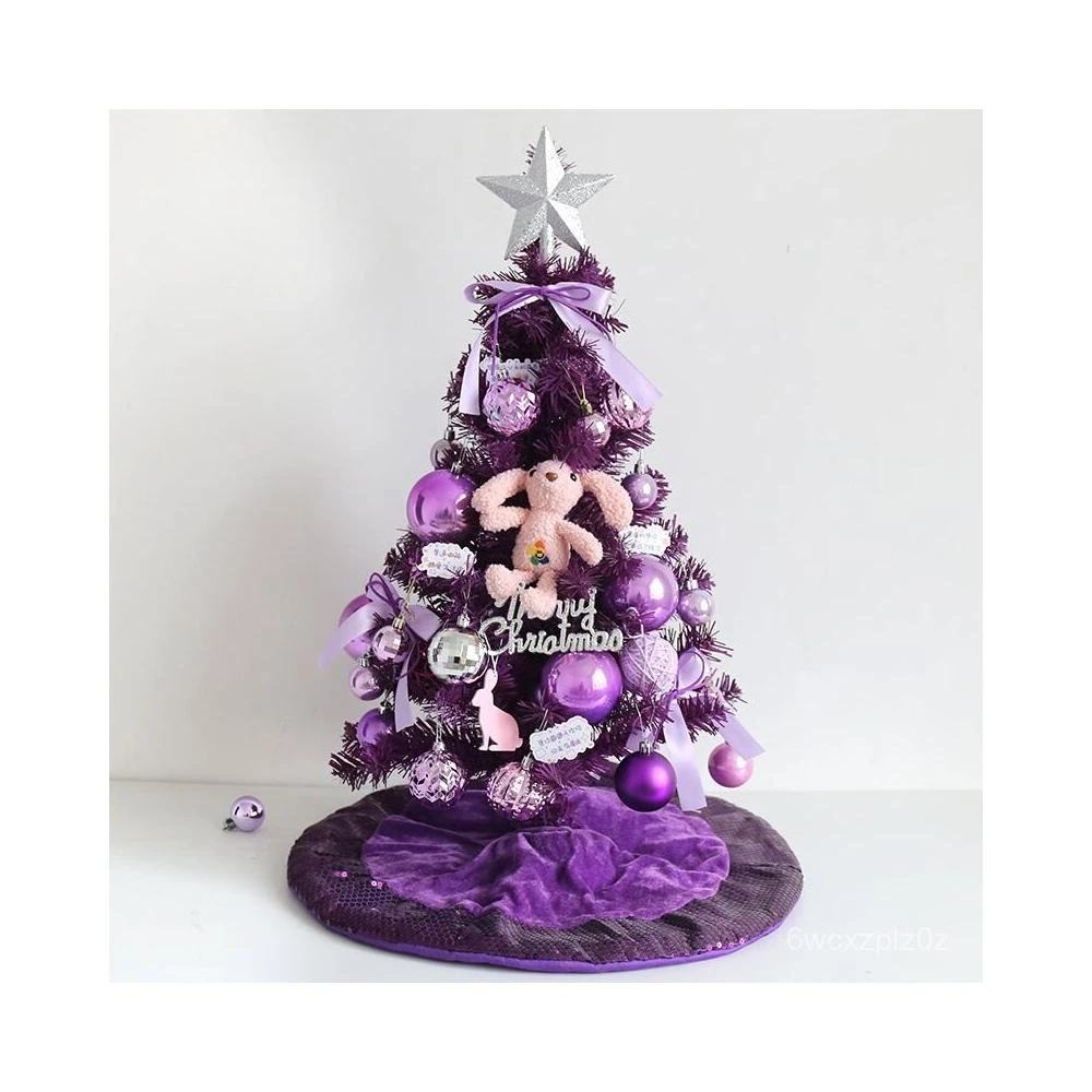 聖誕佈置 仿真耶誕樹 小型聖誕樹 聖誕節裝飾小物60CM紫色聖誕樹套餐桌麵擺件1.2米1.5米1.8網紅商場美陳場景布置