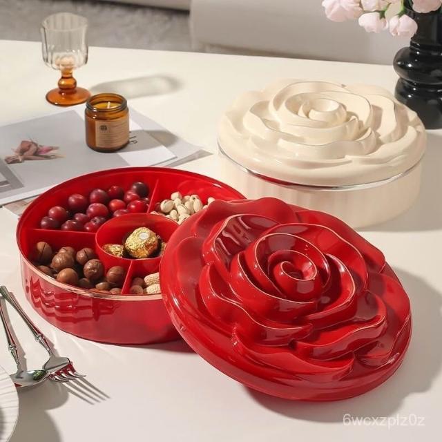 過年糖果盒 零食盤敬果盤點心盒糖果盤零食盒春節用品拜拜水果盤輕奢幹果盤帶蓋零食擺放盤過年喜慶家用客廳茶幾堅果收納盒糖果盒