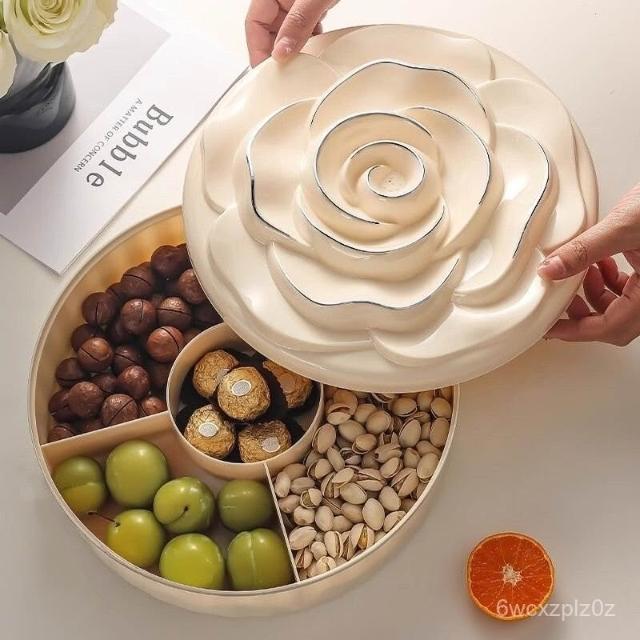 過年糖果盒 零食盤敬果盤點心盒糖果盤零食盒春節用品拜拜水果盤輕奢幹果盤帶蓋零食擺放盤過年喜慶家用客廳茶幾堅果收納盒糖果盒