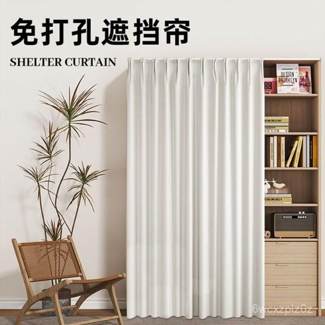 防塵 布簾訂製 窗簾軌道免打孔 櫃子遮擋簾滑軌 擋雜物簾遮醜簾門簾防塵書櫃簾鞋櫃簾子衣櫃櫃子遮擋衣帽間簾櫥櫃