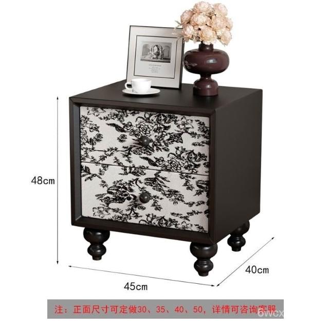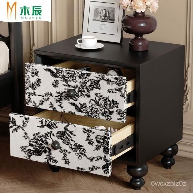 床頭櫃免組裝 床頭置物 北歐床頭櫃 床邊櫃 實木 中古風床頭櫃小型臥室法式複古高級感黑色主臥實木儲物櫃現代簡約