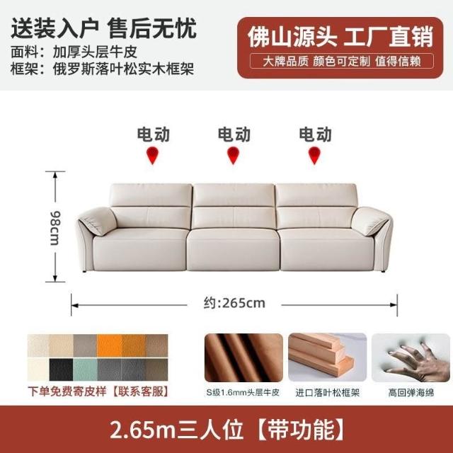 沙發床三人 真皮沙發組 真皮沙發椅 電動沙發椅三人復古沙發椅零靠墻大象耳朵電動沙發床多功能智能伸縮家庭影院太空頭等艙客廳