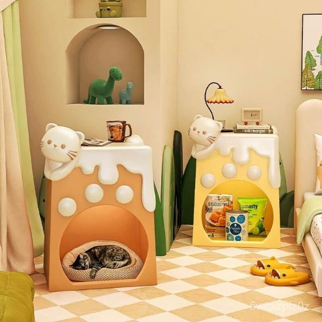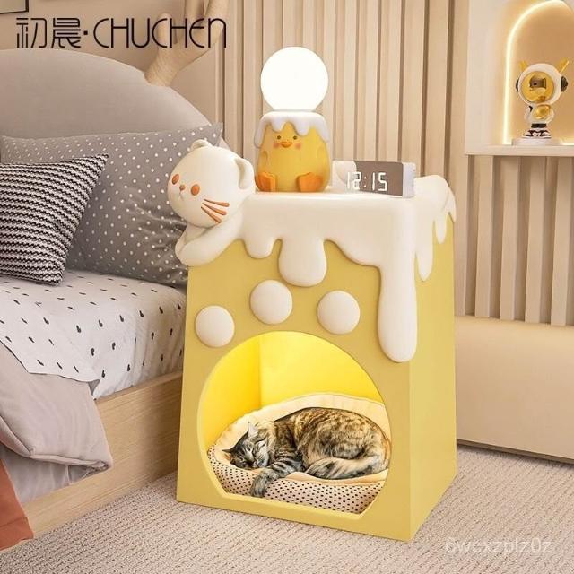 初晨創意兒童床頭櫃貓窩臥室落地擺件客廳家用喬遷新居高檔裝飾品