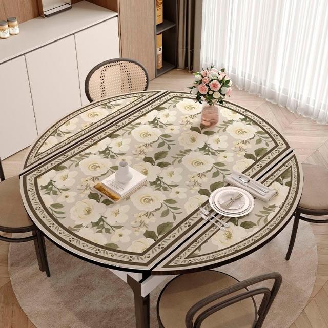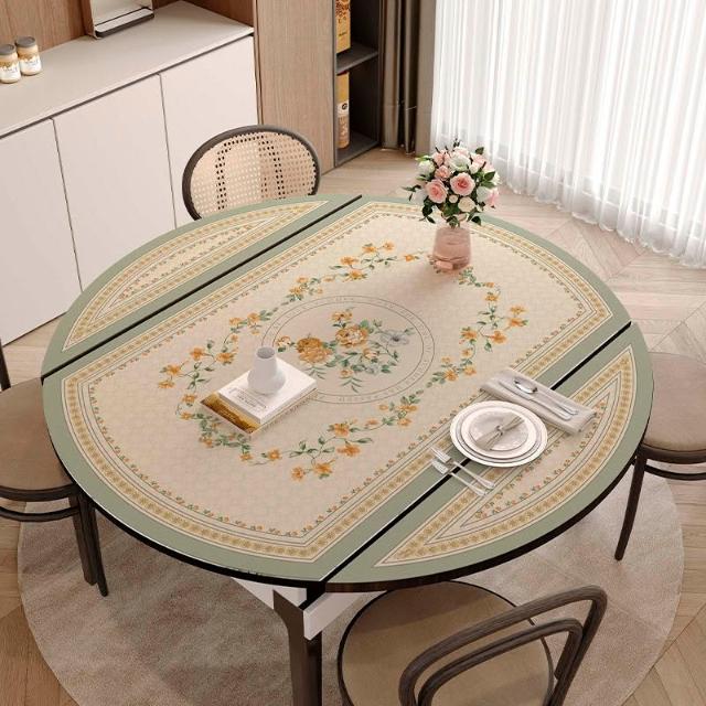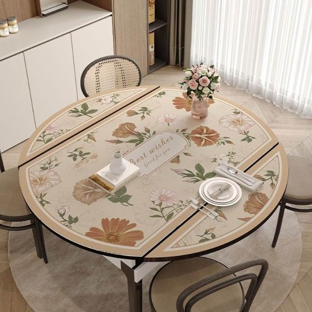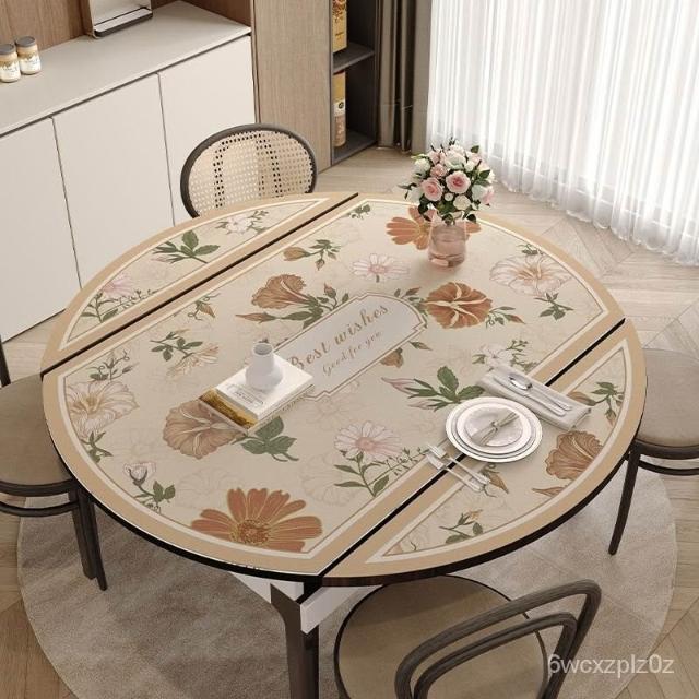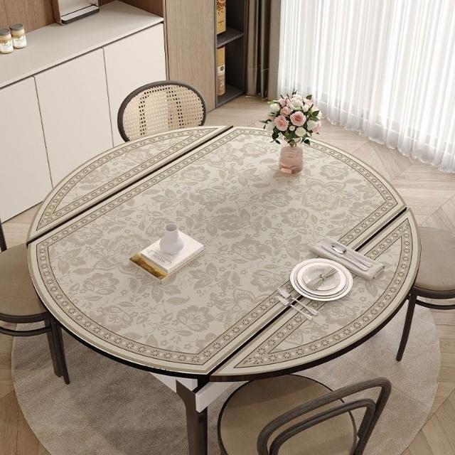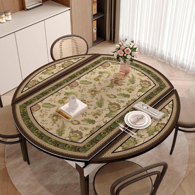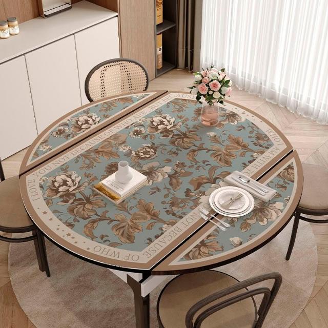 圓桌墊 美式復古桌巾 圓桌巾 防水 圓桌 皮革桌墊 美式橢圓形桌墊皮革桌布茶幾輕奢高級感防水防油防燙折疊圓形墊子