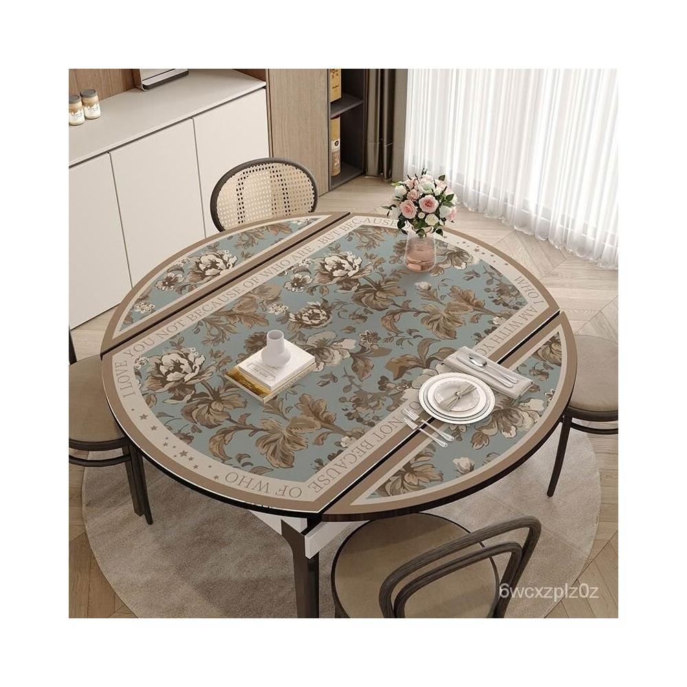 圓桌墊 美式復古桌巾 圓桌巾 防水 圓桌 皮革桌墊 美式橢圓形桌墊皮革桌布茶幾輕奢高級感防水防油防燙折疊圓形墊子