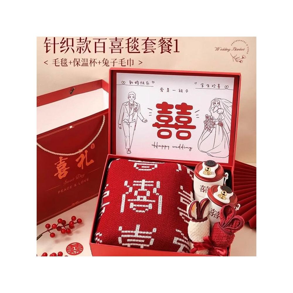 結婚禮物送新人 有意義的禮物 雙麵絨毛薄厚適中 結婚禮物送新人高檔實用訂婚新婚禮物送新娘朋友閨蜜定製百喜毛毯