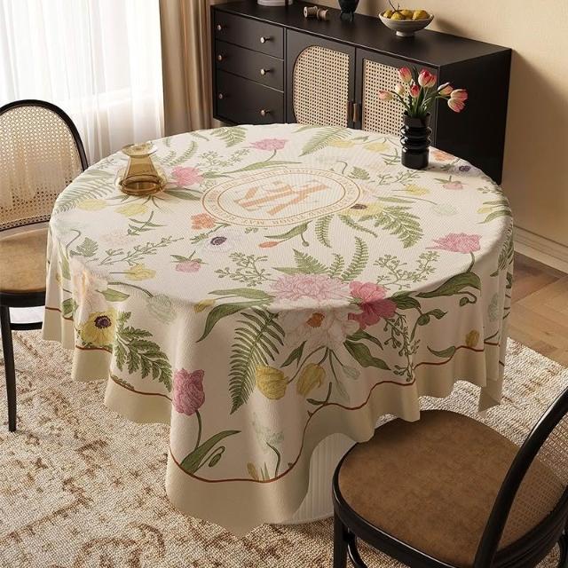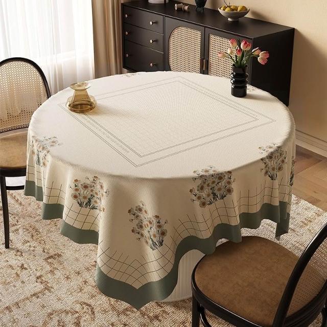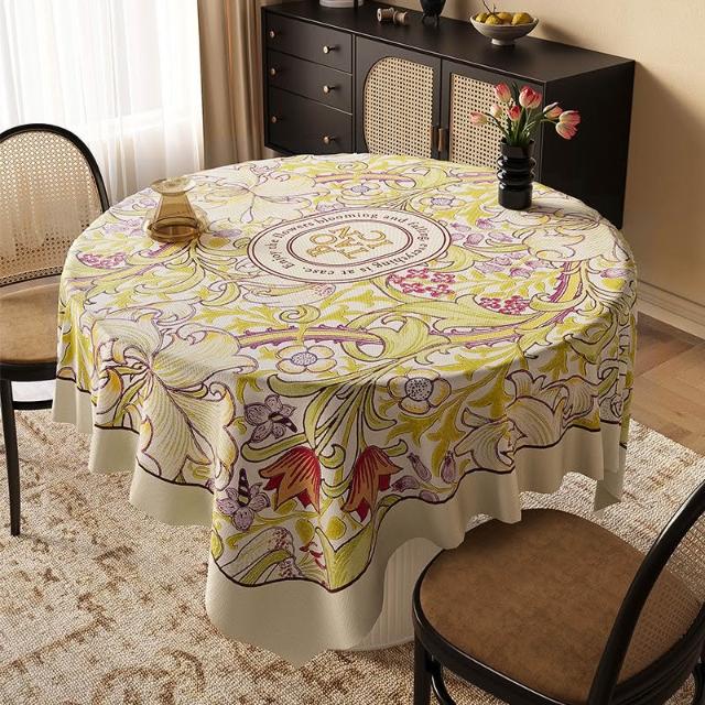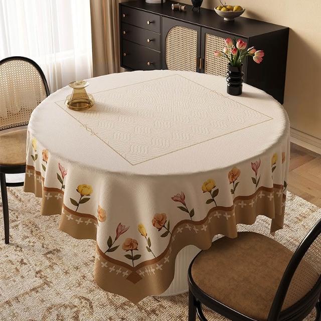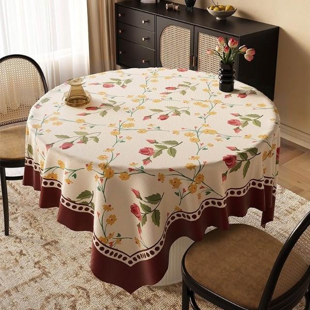 美式復古桌巾 鄉村風桌巾 圓桌巾 防水 圓桌 皮革桌墊 美式圓形餐桌布防水防油防燙免洗輕奢高級感臥室客廳圓桌茶幾臺布
