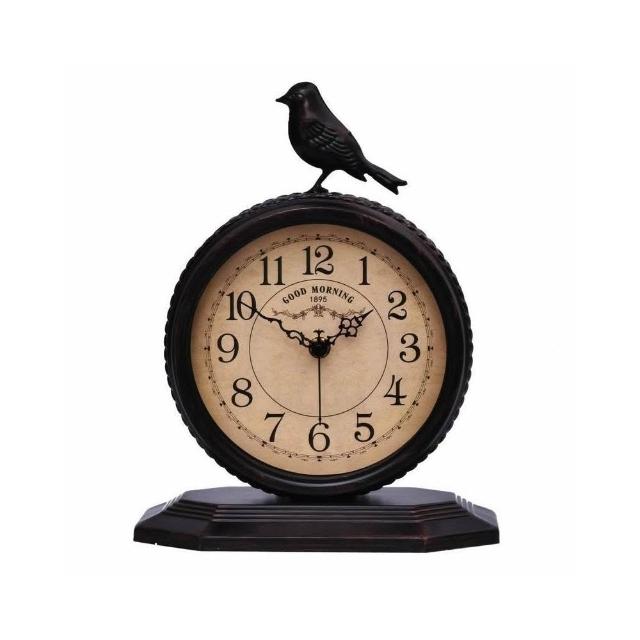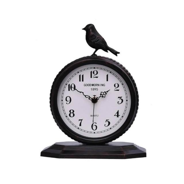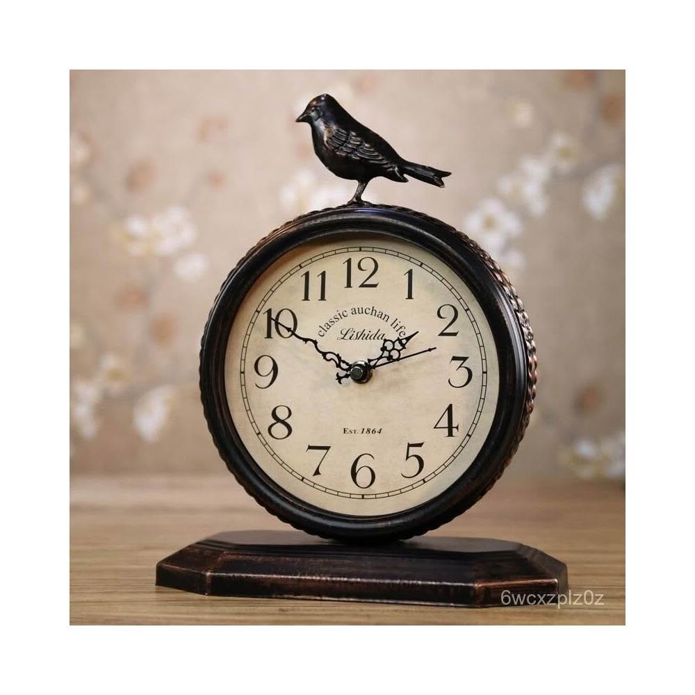 座鐘 復古 復古時鐘 桌面時鐘擺件 美式鄉村複古鐵藝靜音座鍾時尚個性歐式桌面鍾床頭櫃仿古時鍾鳥鍾