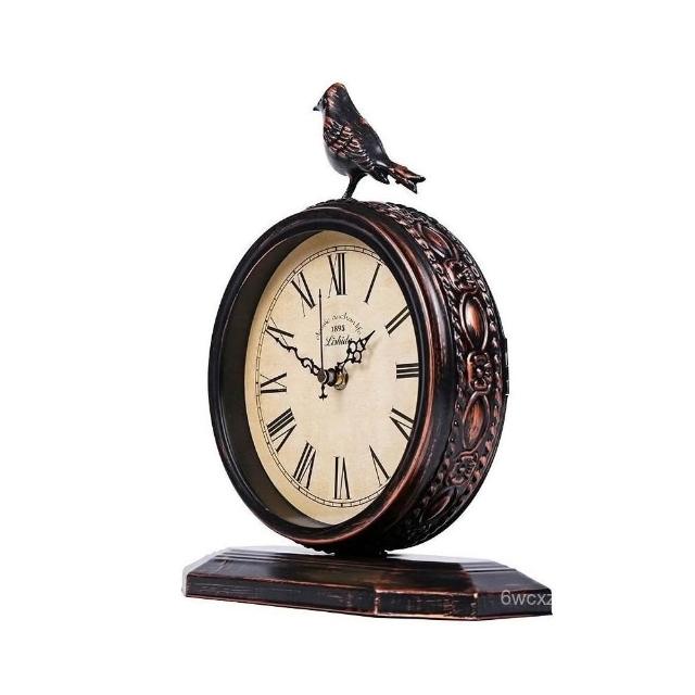 座鐘 復古 復古時鐘 桌面時鐘擺件 美式鄉村複古鐵藝靜音座鍾時尚個性歐式桌面鍾床頭櫃仿古時鍾鳥鍾