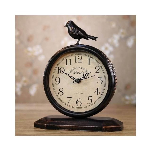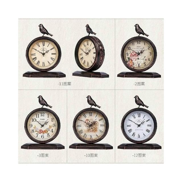 座鐘 復古 復古時鐘 桌面時鐘擺件 美式鄉村複古鐵藝靜音座鍾時尚個性歐式桌面鍾床頭櫃仿古時鍾鳥鍾