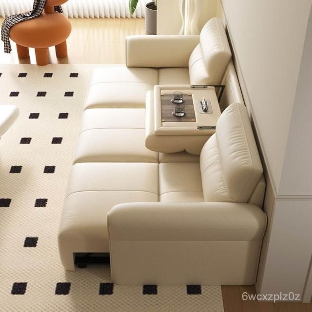 沙發床三人 電動沙發椅三人 真皮沙發組 真皮沙發椅 2024新款頭等電動真皮沙發功能客廳雙三人位智能直排太空艙沙發