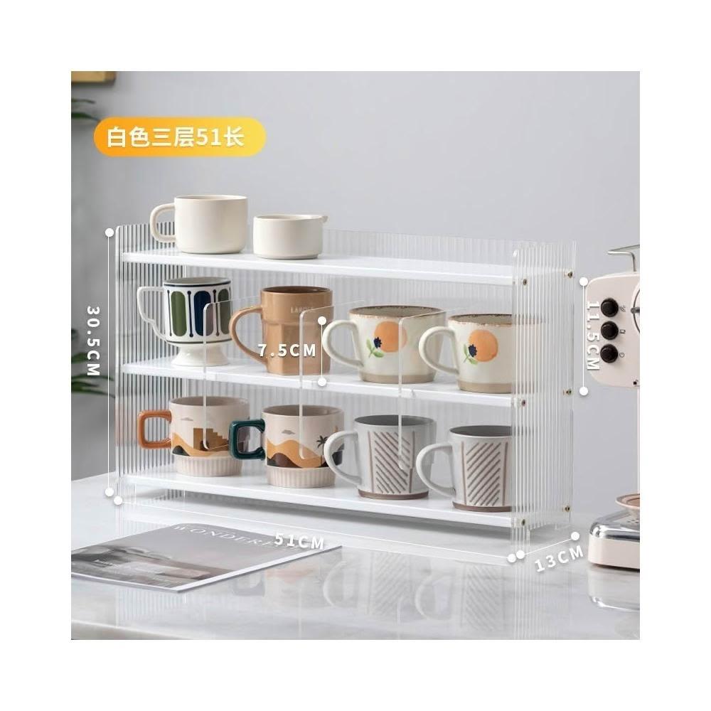 馬克杯收納架 桌上收納櫃 透明壓克力杯子收納架分層置物架 桌面水杯 茶杯 咖啡杯九宮格防塵杯架 實木三層 四層隔層杯子櫃