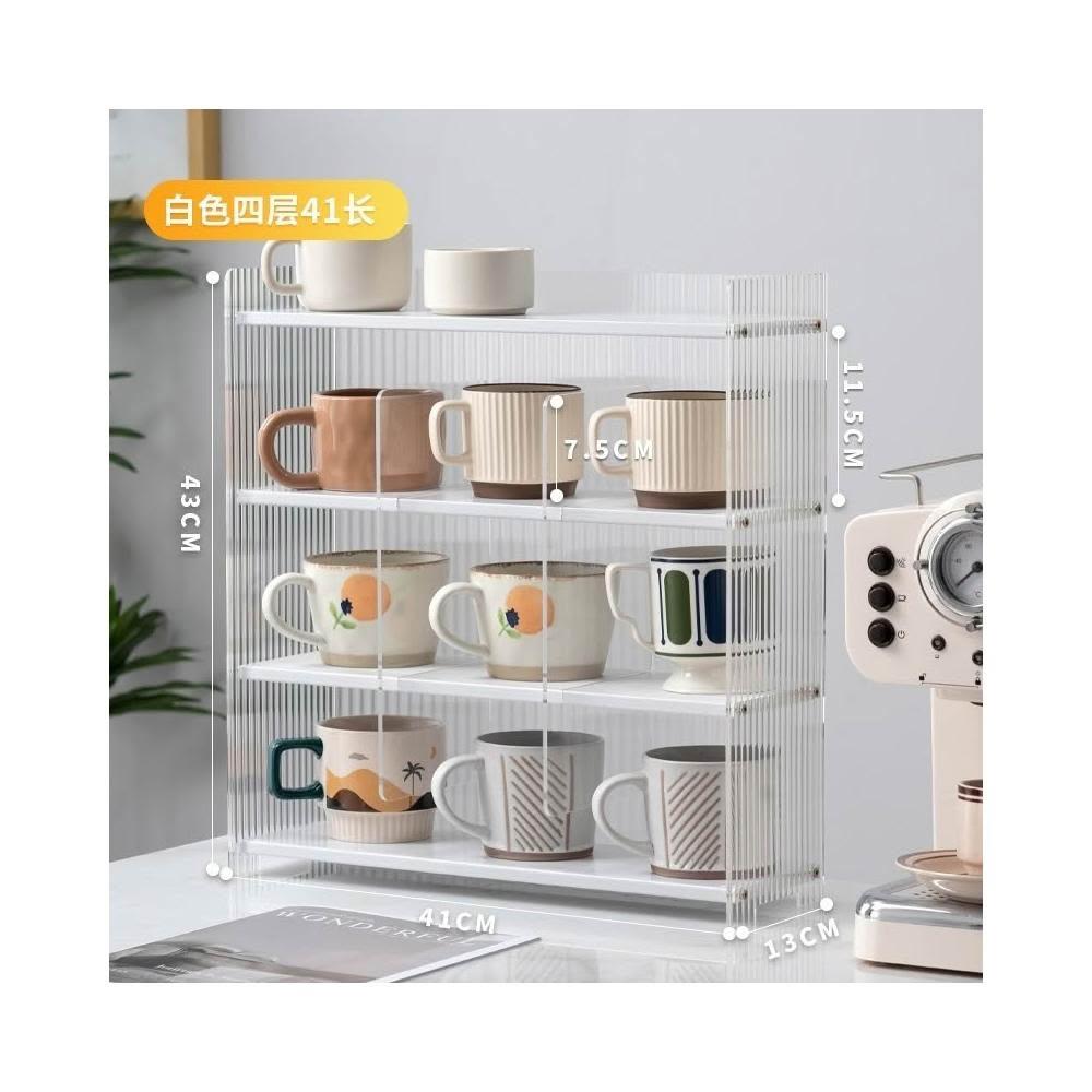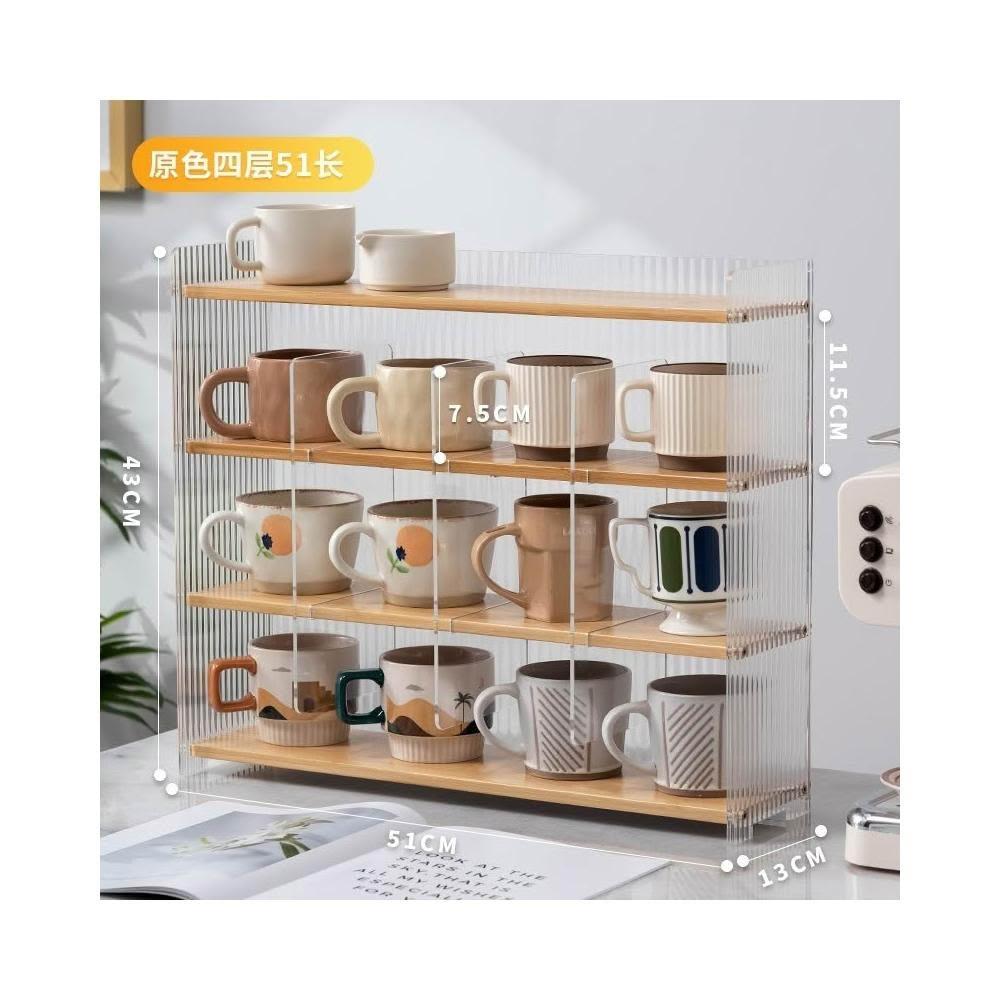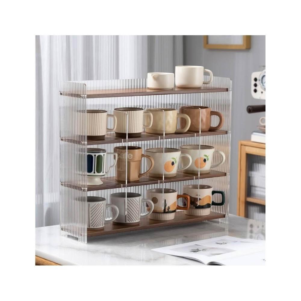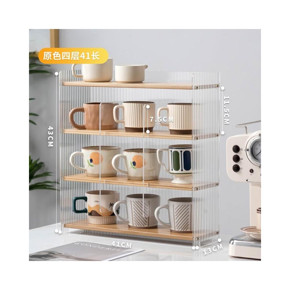 馬克杯收納架 桌上收納櫃 透明壓克力杯子收納架分層置物架 桌面水杯 茶杯 咖啡杯九宮格防塵杯架 實木三層 四層隔層杯子櫃