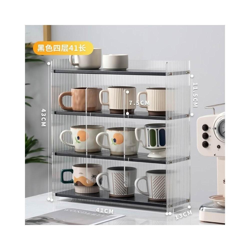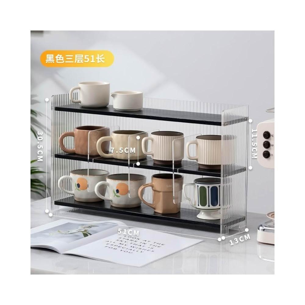 馬克杯收納架 桌上收納櫃 透明壓克力杯子收納架分層置物架 桌面水杯 茶杯 咖啡杯九宮格防塵杯架 實木三層 四層隔層杯子櫃