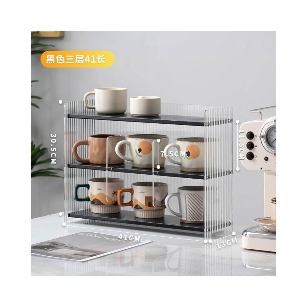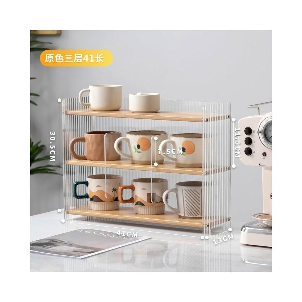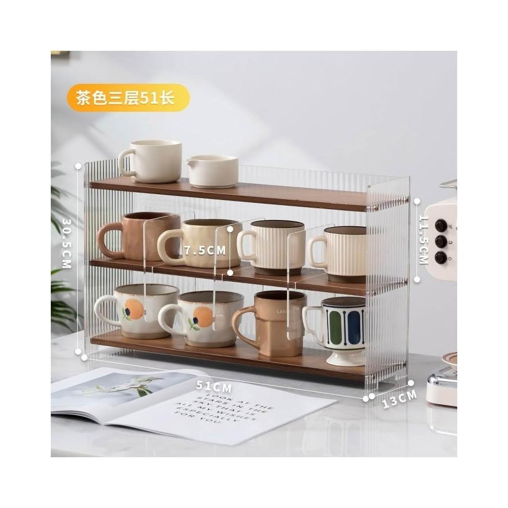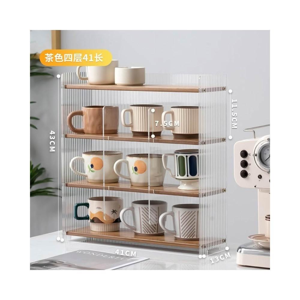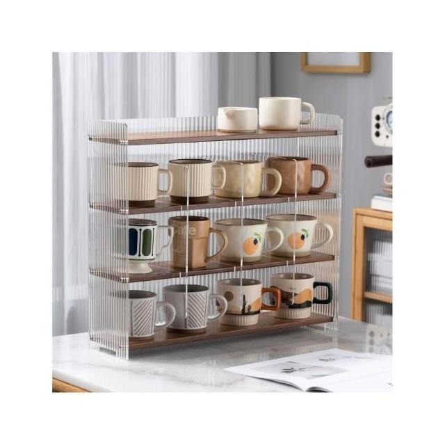 馬克杯收納架 桌上收納櫃 透明壓克力杯子收納架分層置物架 桌面水杯 茶杯 咖啡杯九宮格防塵杯架 實木三層 四層隔層杯子櫃