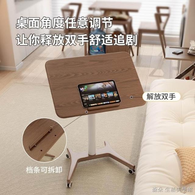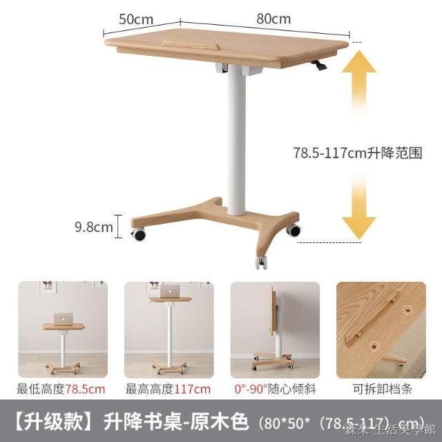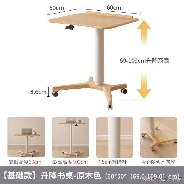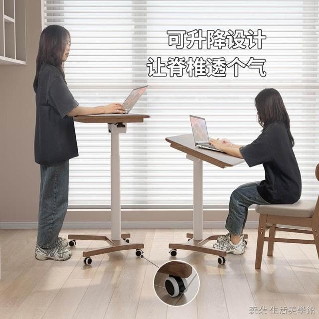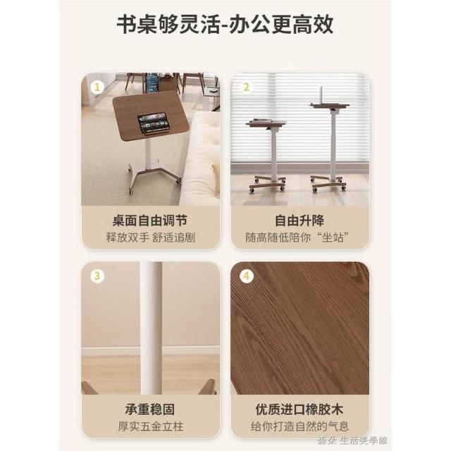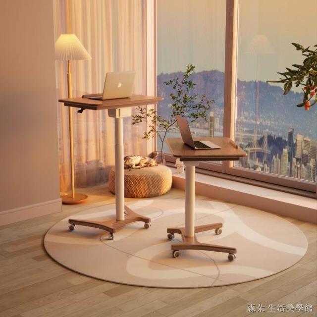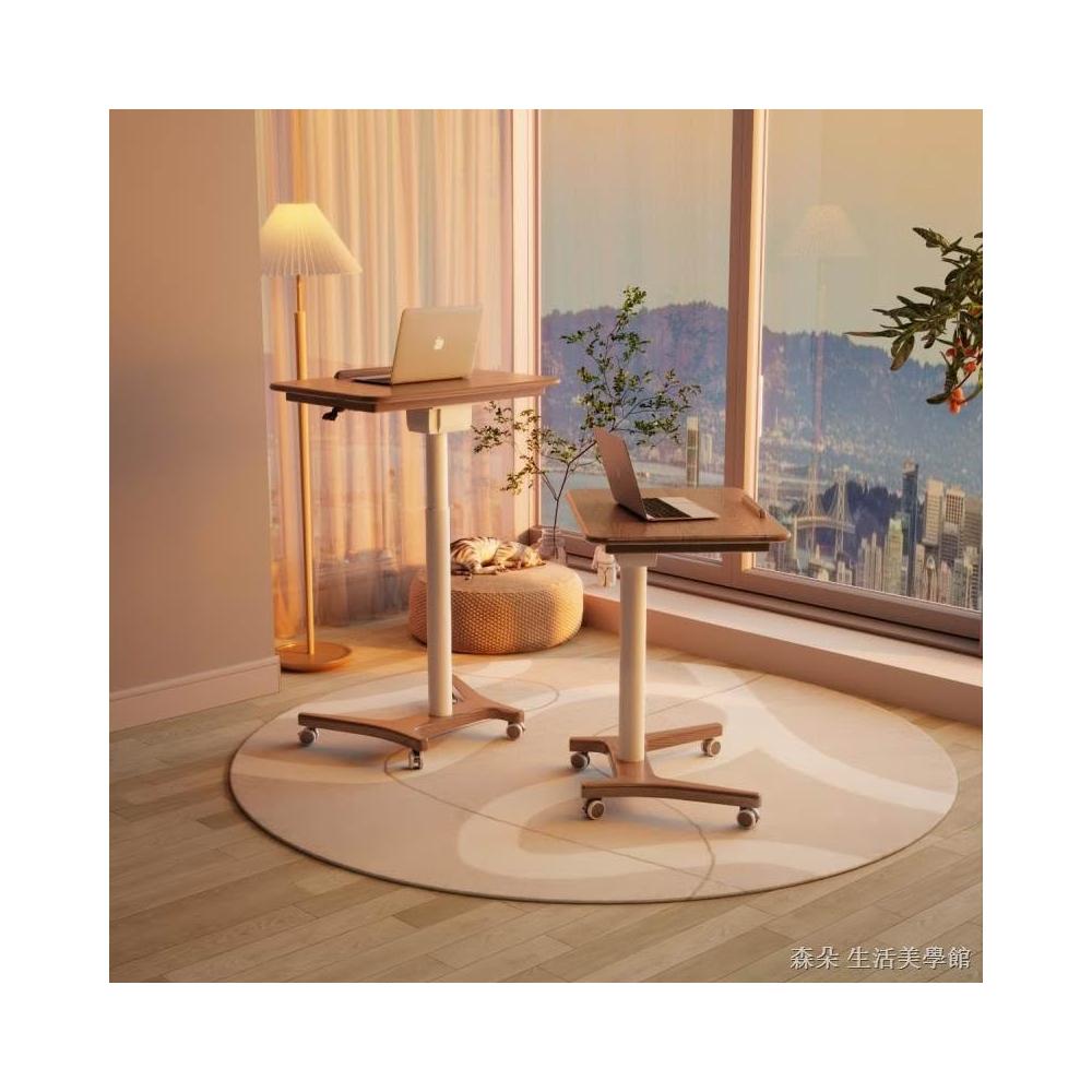實木氣壓升降桌 移動電腦桌 可移動式桌子 小戶型床邊桌 家用學習桌 可折疊小書桌 筆電桌 小型電腦桌