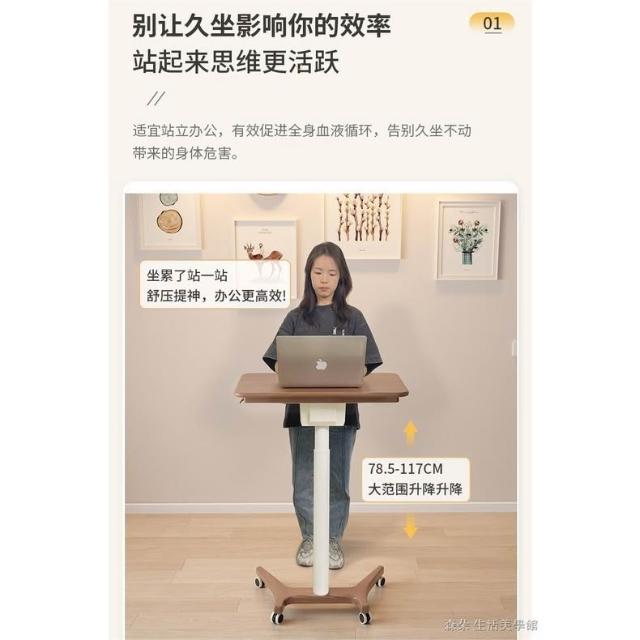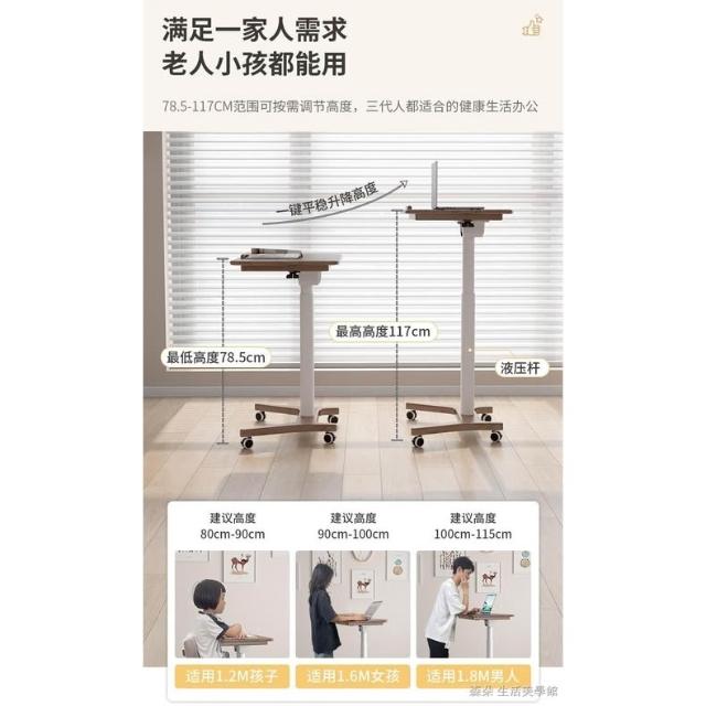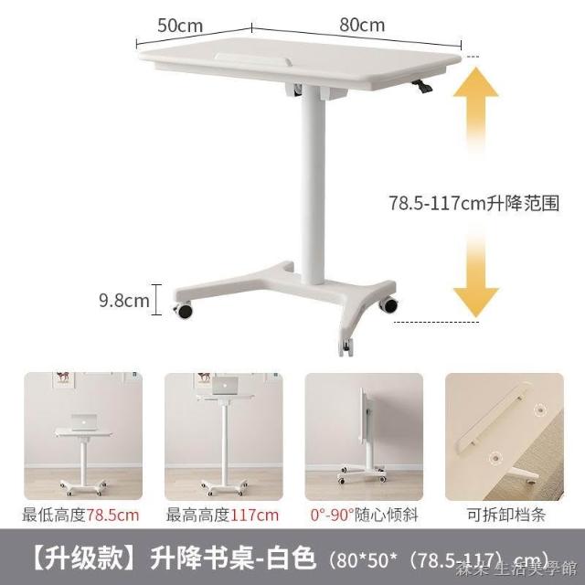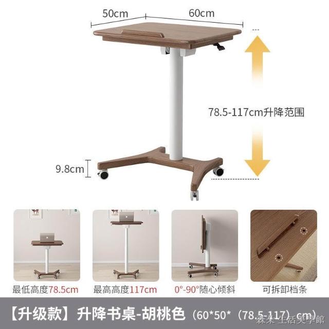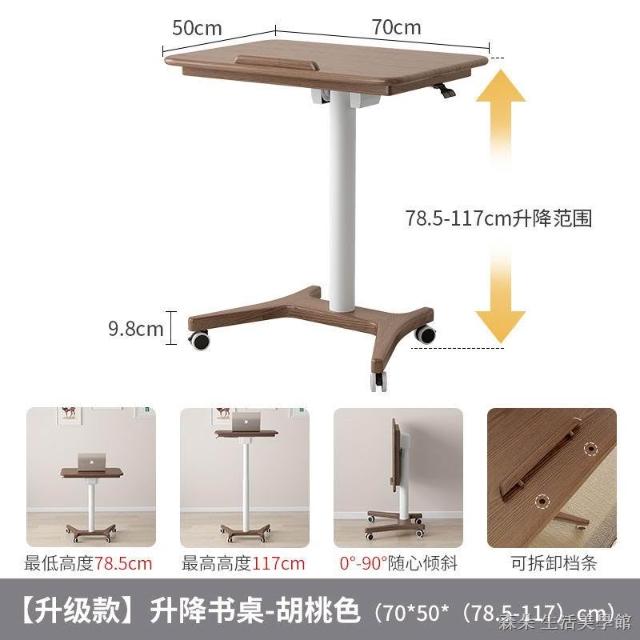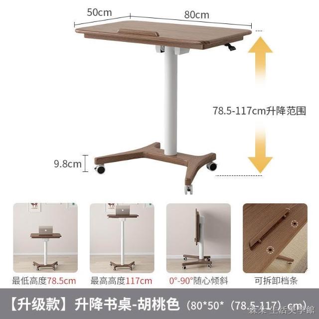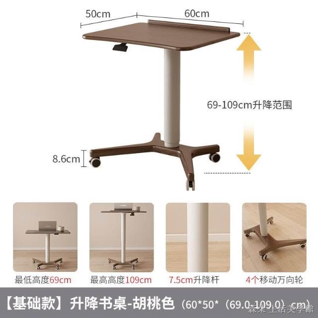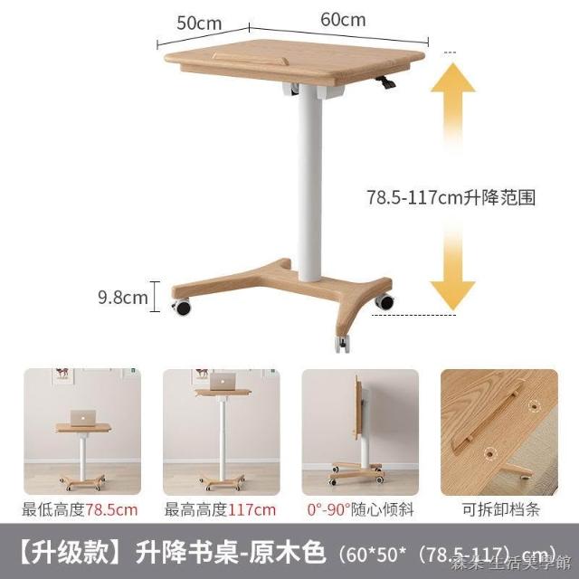 實木氣壓升降桌 移動電腦桌 可移動式桌子 小戶型床邊桌 家用學習桌 可折疊小書桌 筆電桌 小型電腦桌