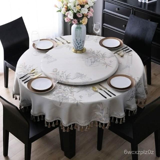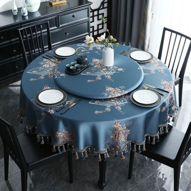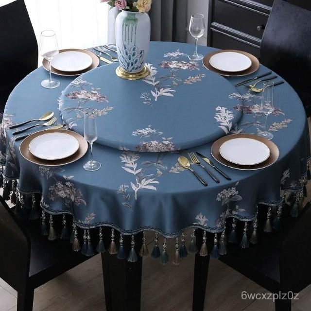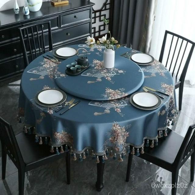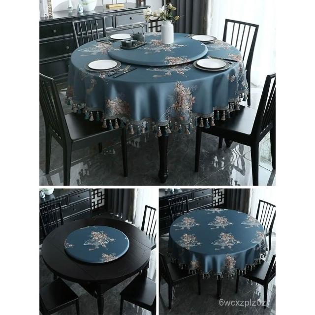 圓桌 皮革桌墊 圓桌巾 防水 鄉村風桌巾 美式復古桌巾 新中式圓桌布布藝大圓桌桌布高級感餐桌布圓形茶幾臺布深色中國風