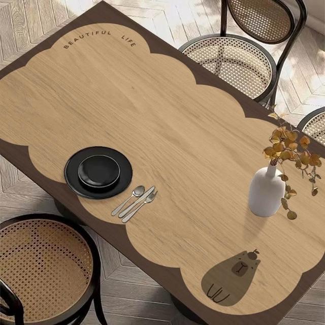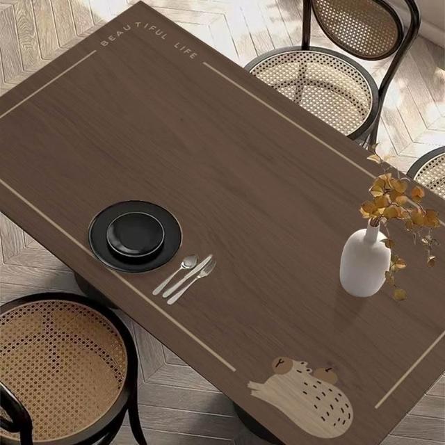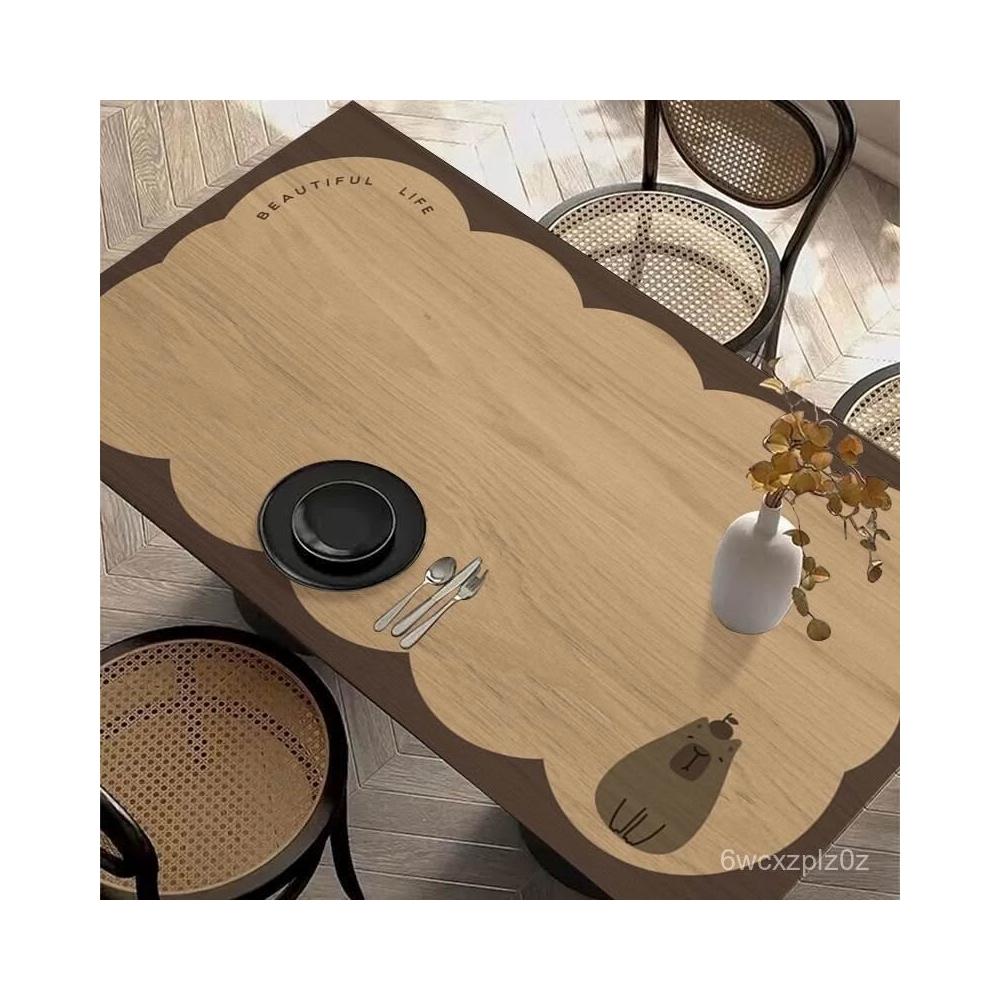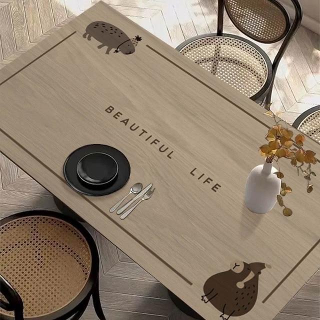 小紅書推薦 仿實木紋防水防油免洗桌墊原木色餐桌布輕奢高級感茶幾桌麵保護墊
