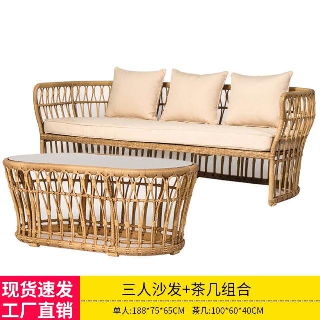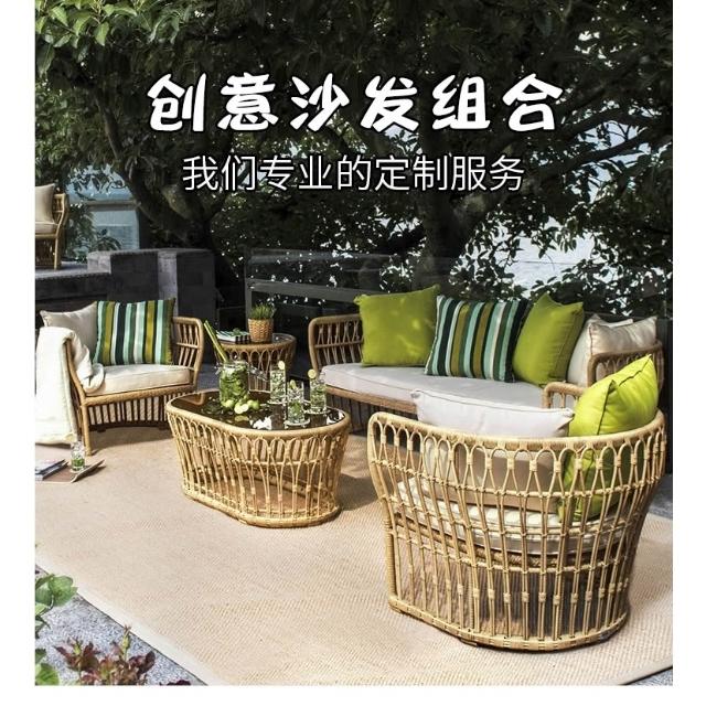 戶外休閑藤編沙發組合 室內桌椅陽臺客廳藤沙發 庭院椅子 創意籐椅沙發 藤製沙發 籐沙發 三人沙發椅 藤椅沙發組