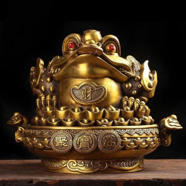聚寶盆招財三足金蟾擺件銅三腳蟾蜍客廳玄關喬遷店鋪開業送禮